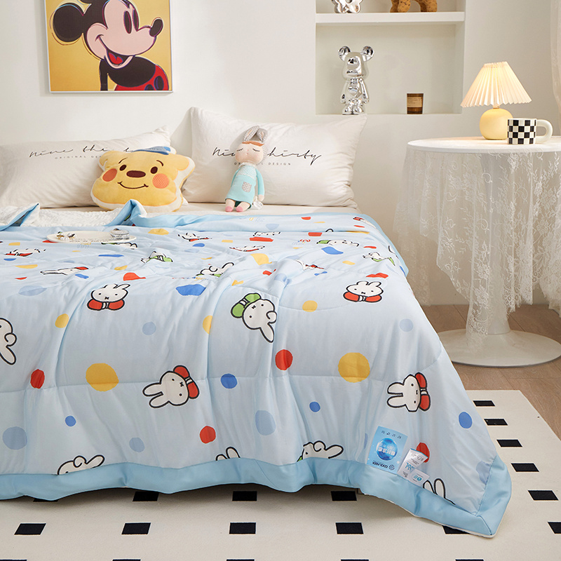 一米阳光 2023新款凉感丝豆豆款包边夏被 米菲兔蓝