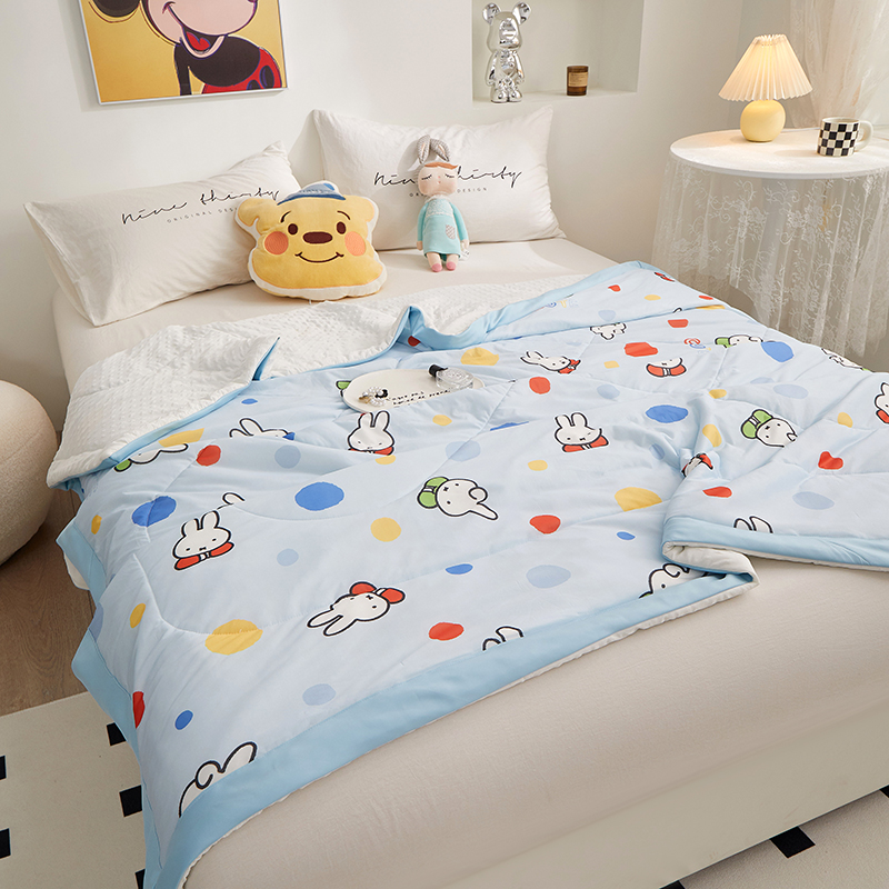 商品名称:一米阳光 2023新款凉感丝豆豆款包边夏被 米菲兔蓝