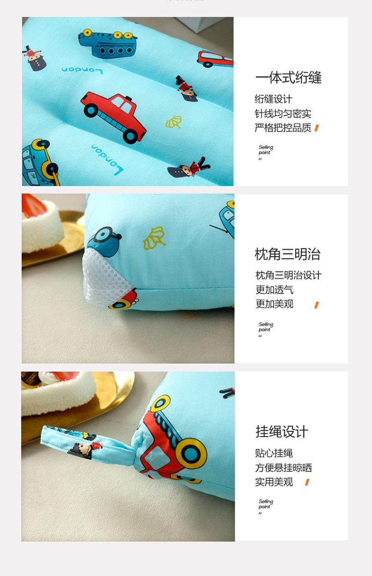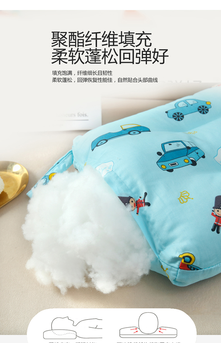 当前位置: 91家纺网 > 商品网购 > 枕头/枕芯/保健枕/颈椎枕 > 普通枕芯 > 沁童 新款全棉13372面料羽丝棉芯儿童枕30*50cm 小汽车