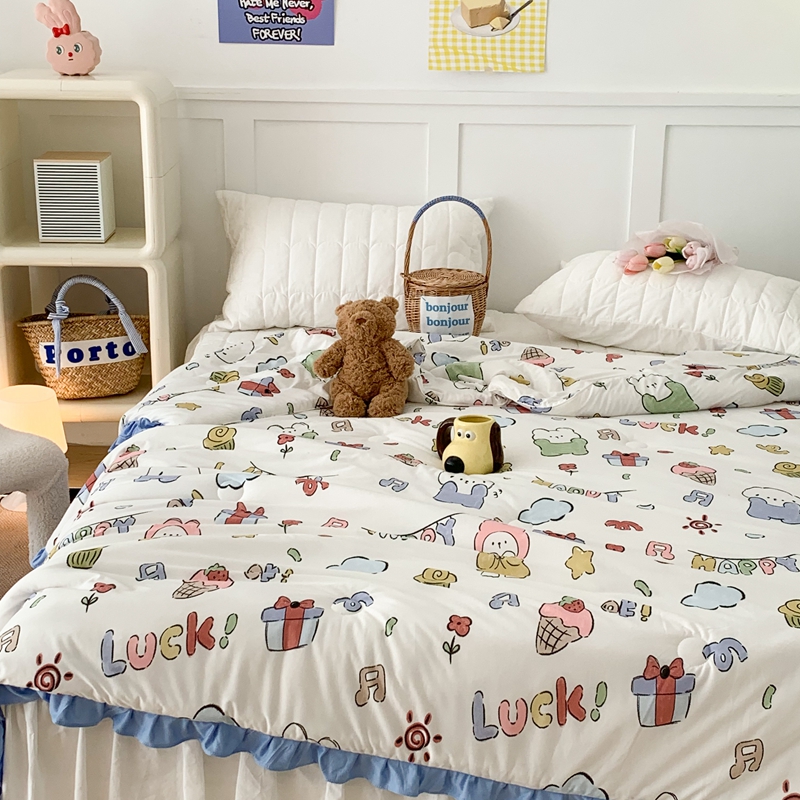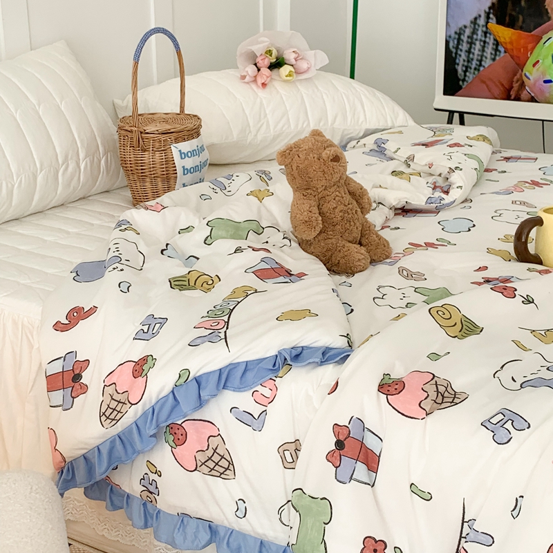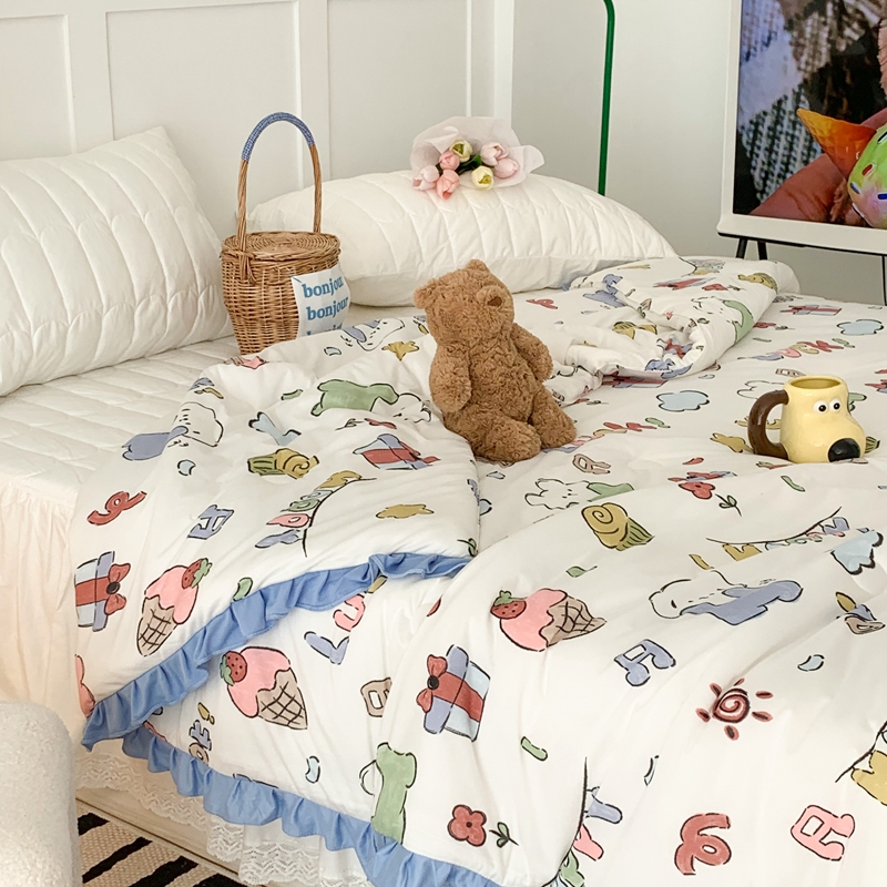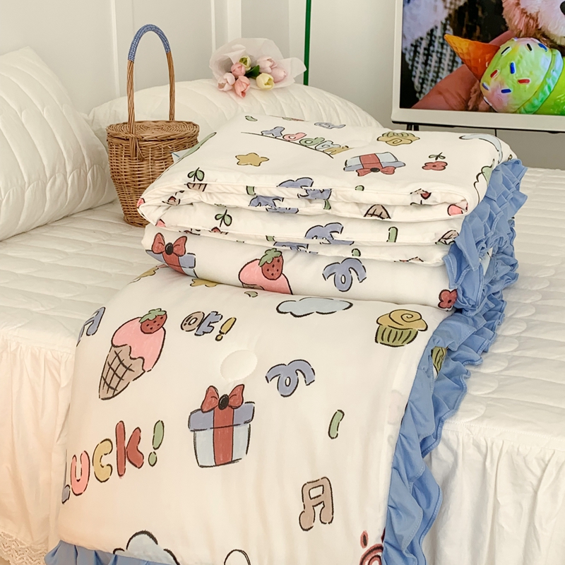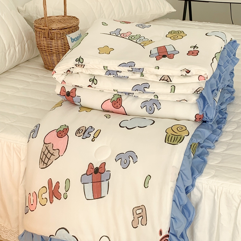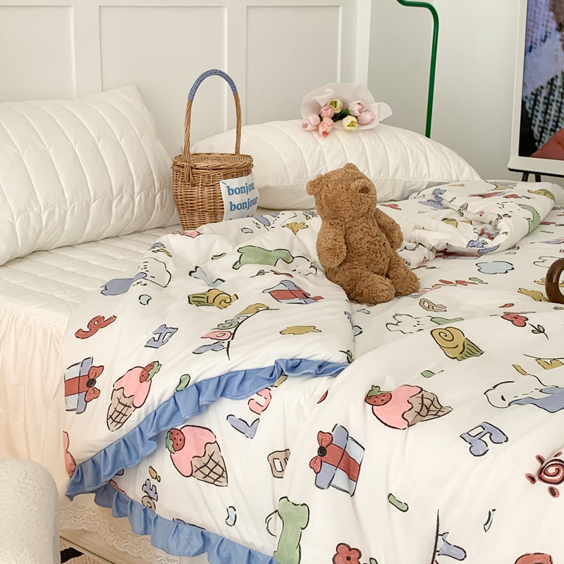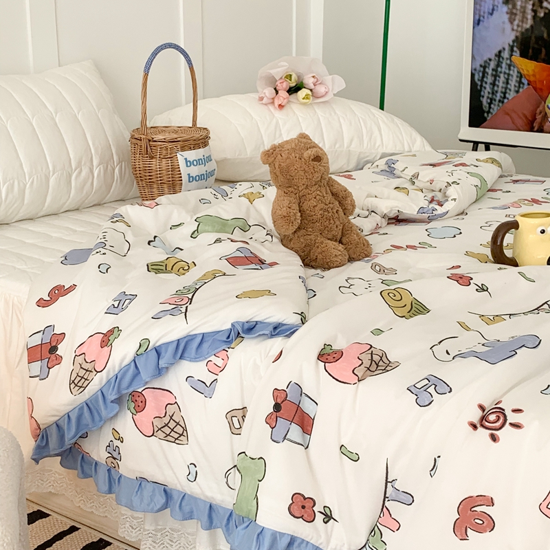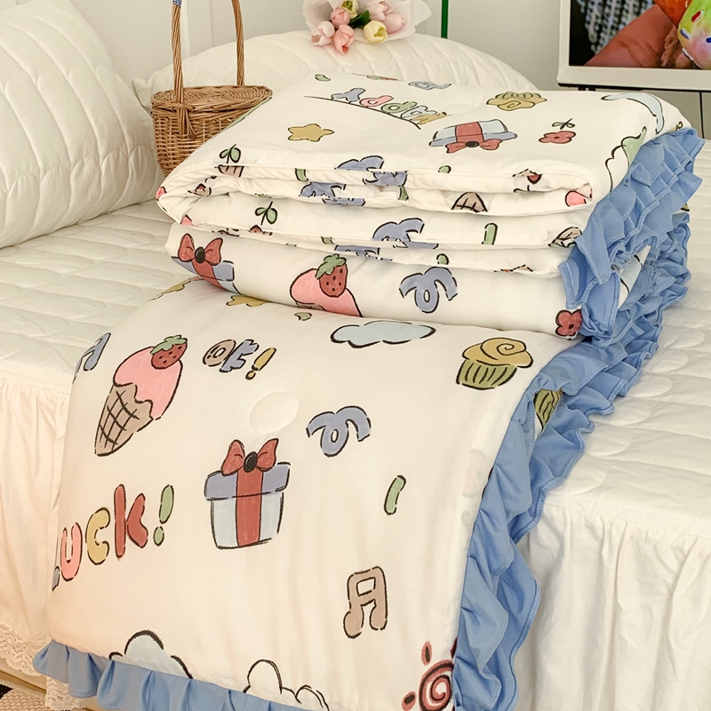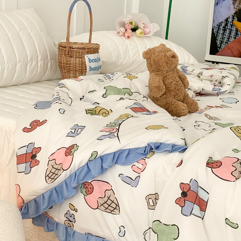 昔可家纺2023新款花边款云柔针织大豆夏被 夏日萌趣