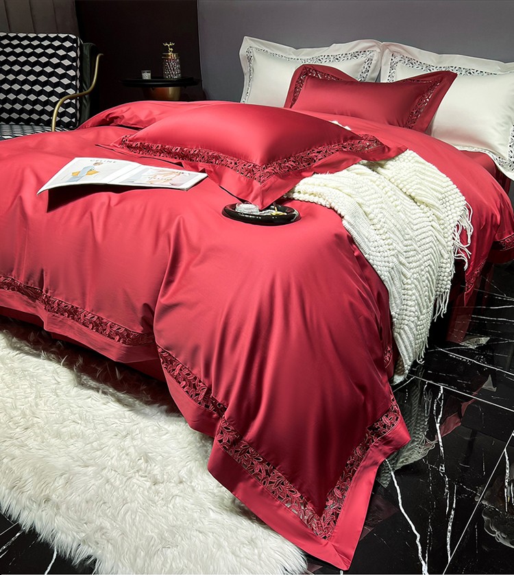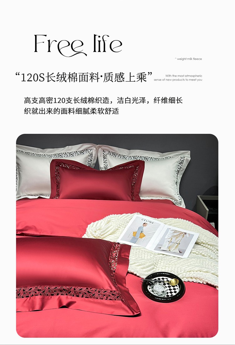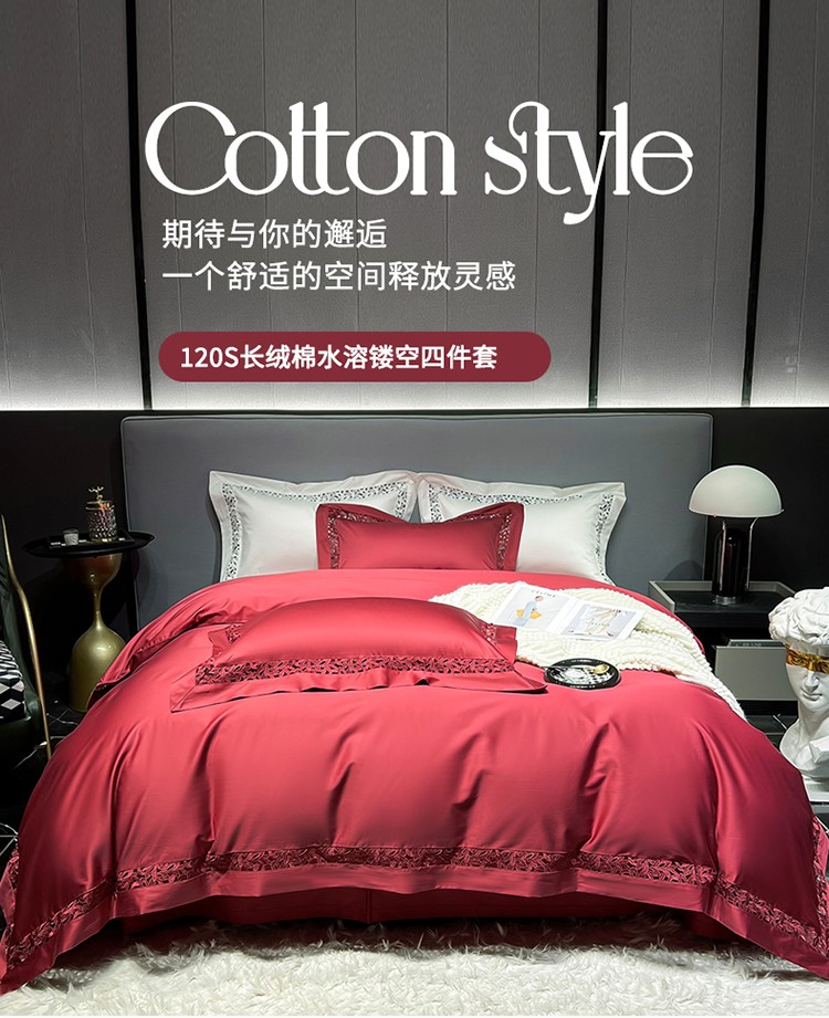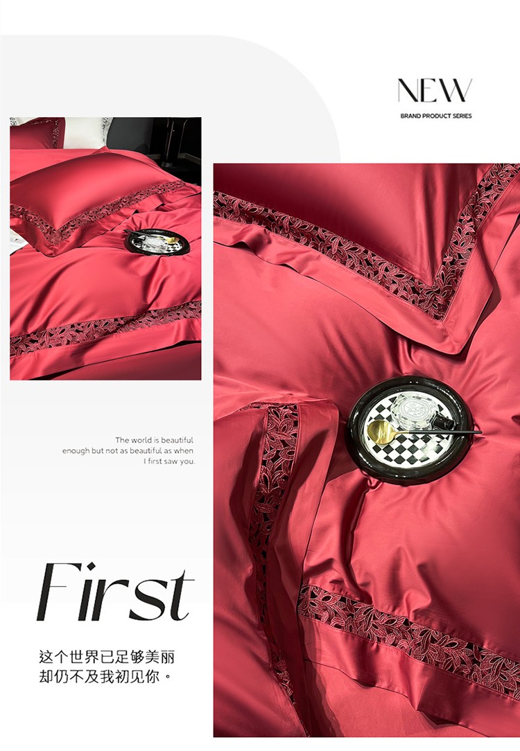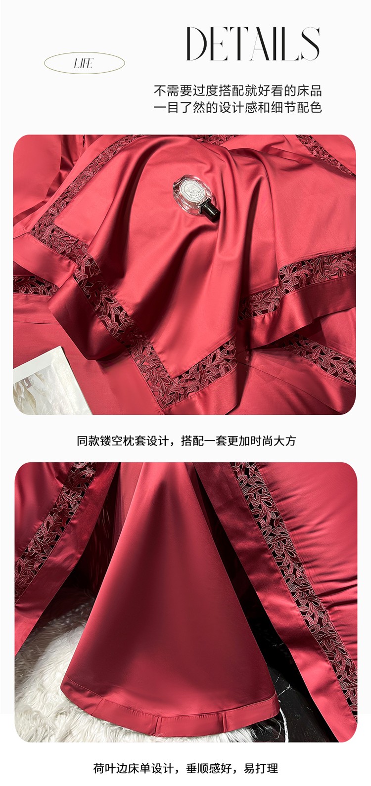 商品名称:淼铭 2025新款水溶镂空四件套-遇见系列 遇见-玫红
