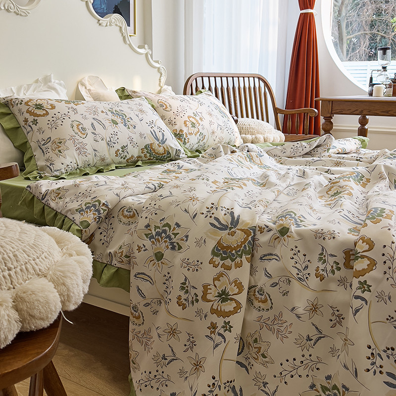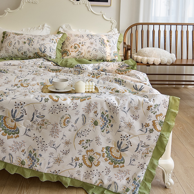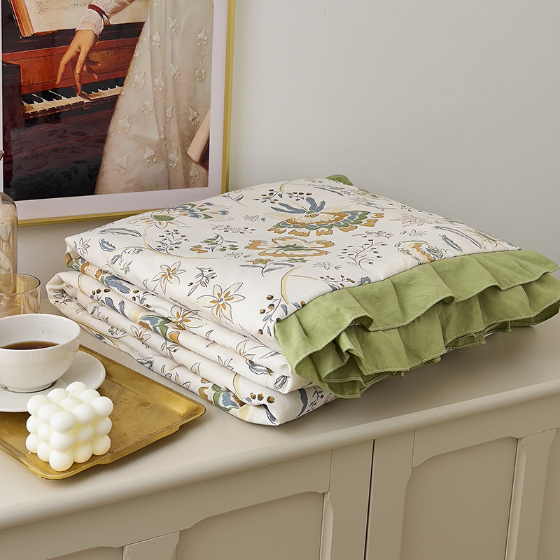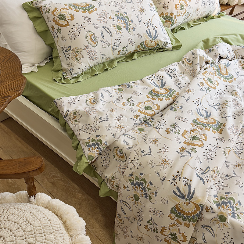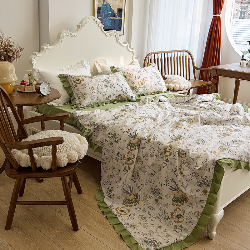 (总)梦莱斯 2025新款田园碎花纯棉花边四件套-床盖款,采薇,花精灵,花开半夏,莱茵,恋爱季,绿叶仙踪,糜花似锦,糜花熙悦,秘境花园