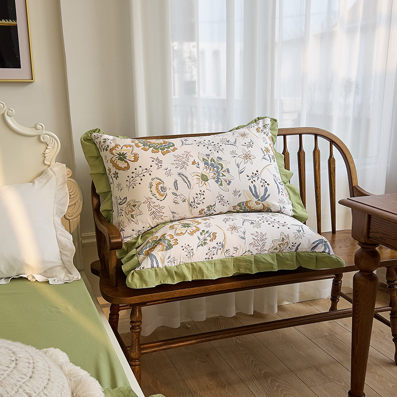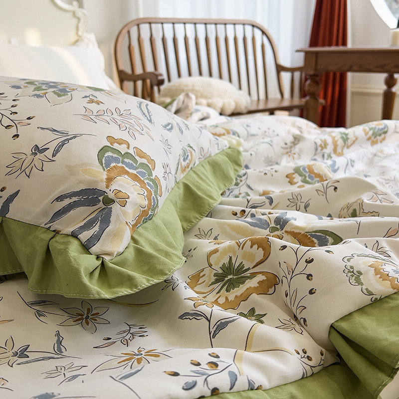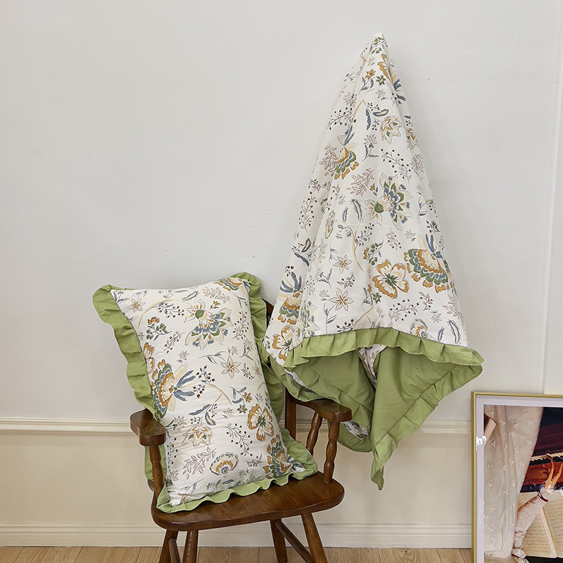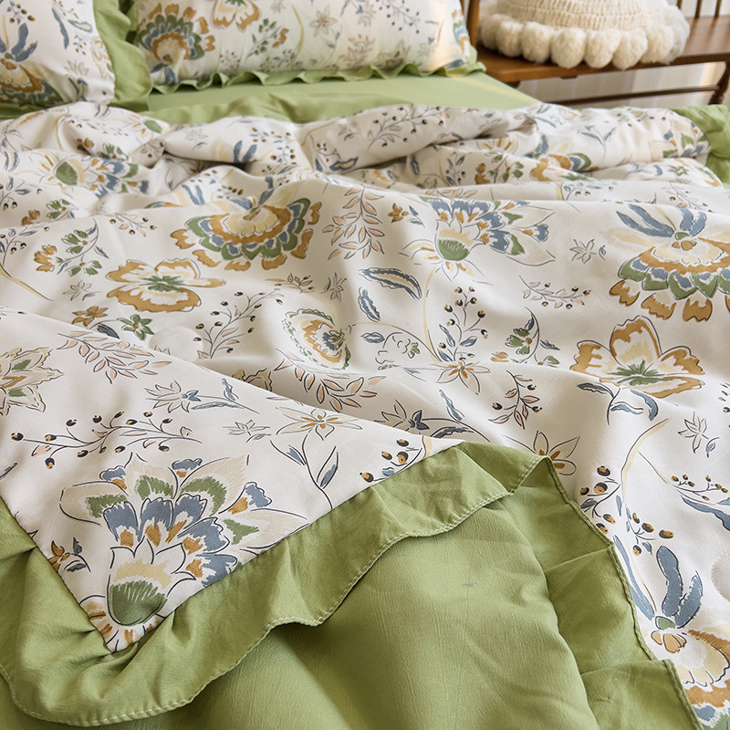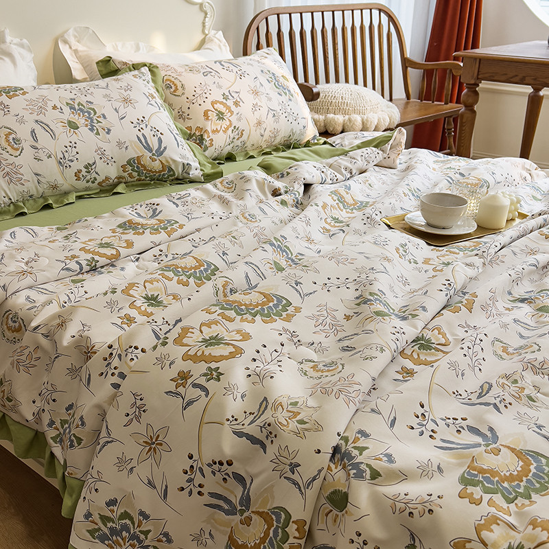 (总)梦莱斯 2025新款田园碎花纯棉花边四件套-床盖款,采薇,花精灵,花开半夏,莱茵,恋爱季,绿叶仙踪,糜花似锦,糜花熙悦,秘境花园