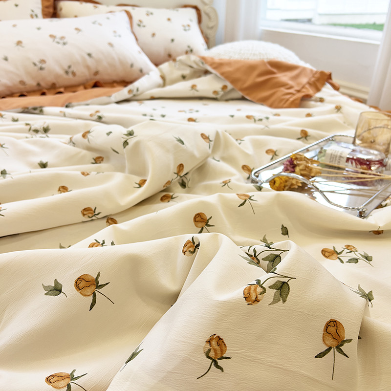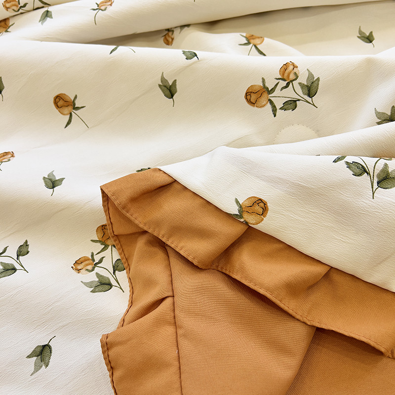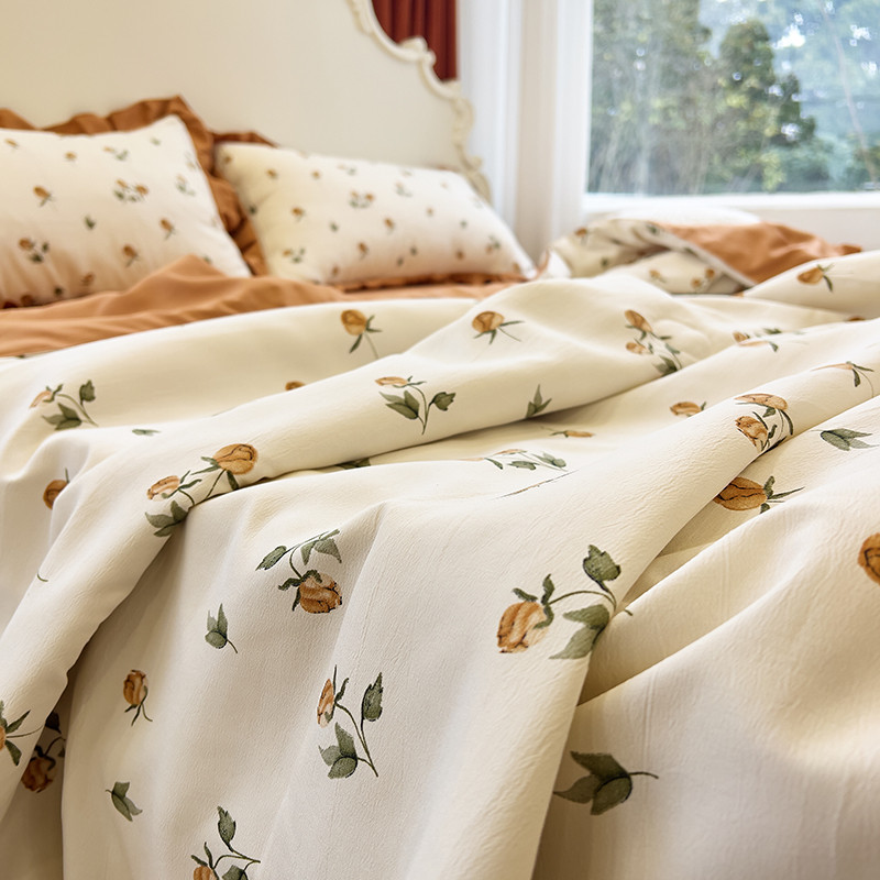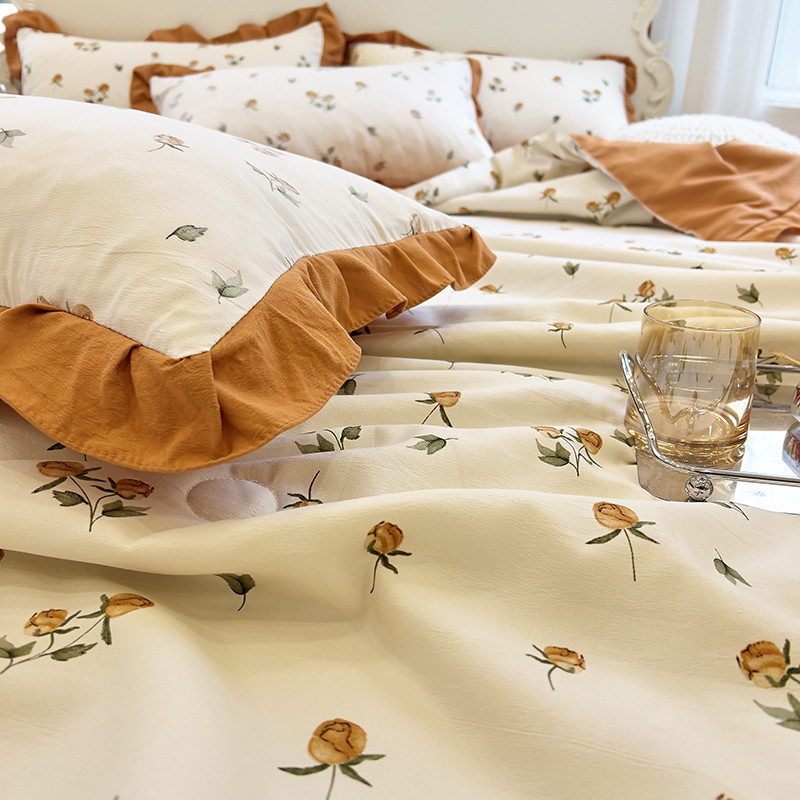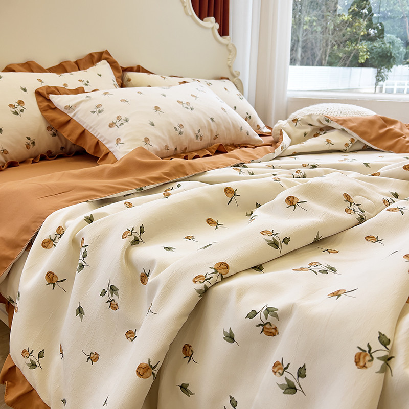 梦莱斯 2023新款水洗棉麻印花夏被四件套 幽静米黄