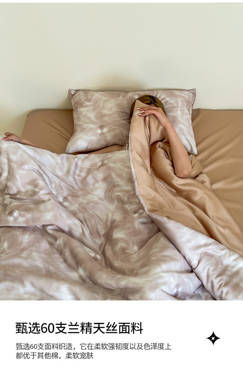 商品名称:赫帛 2023新款60S兰精天丝四件套 珍珠奶咖色