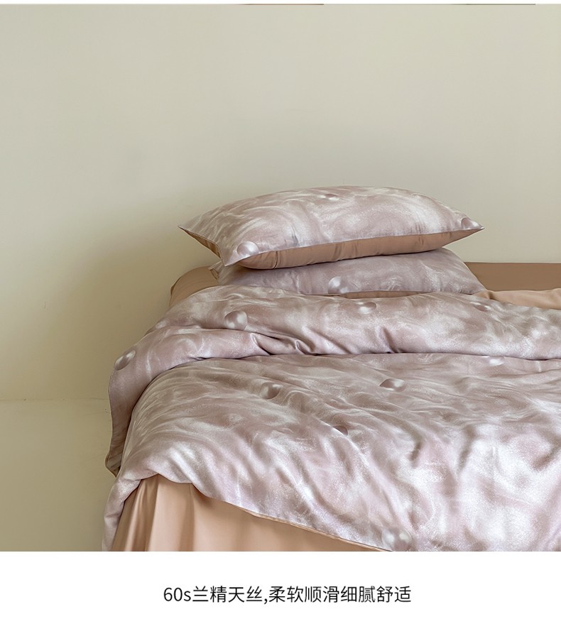 (总)赫帛 2023新款60S兰精天丝四件套,波光粼粼,闪亮字母-丁香紫,闪亮字母-牛油果绿,珍珠奶咖色,珍珠桃桃色,珍珠芋泥色
