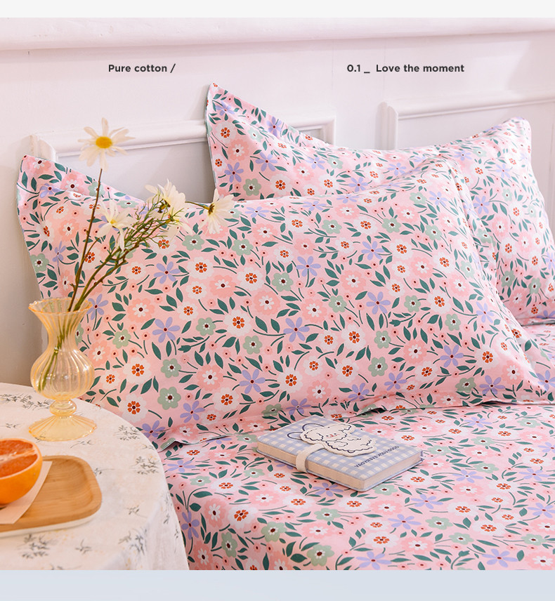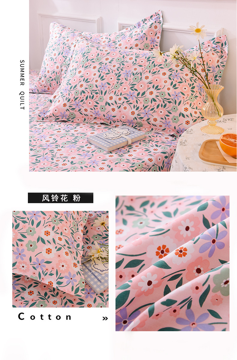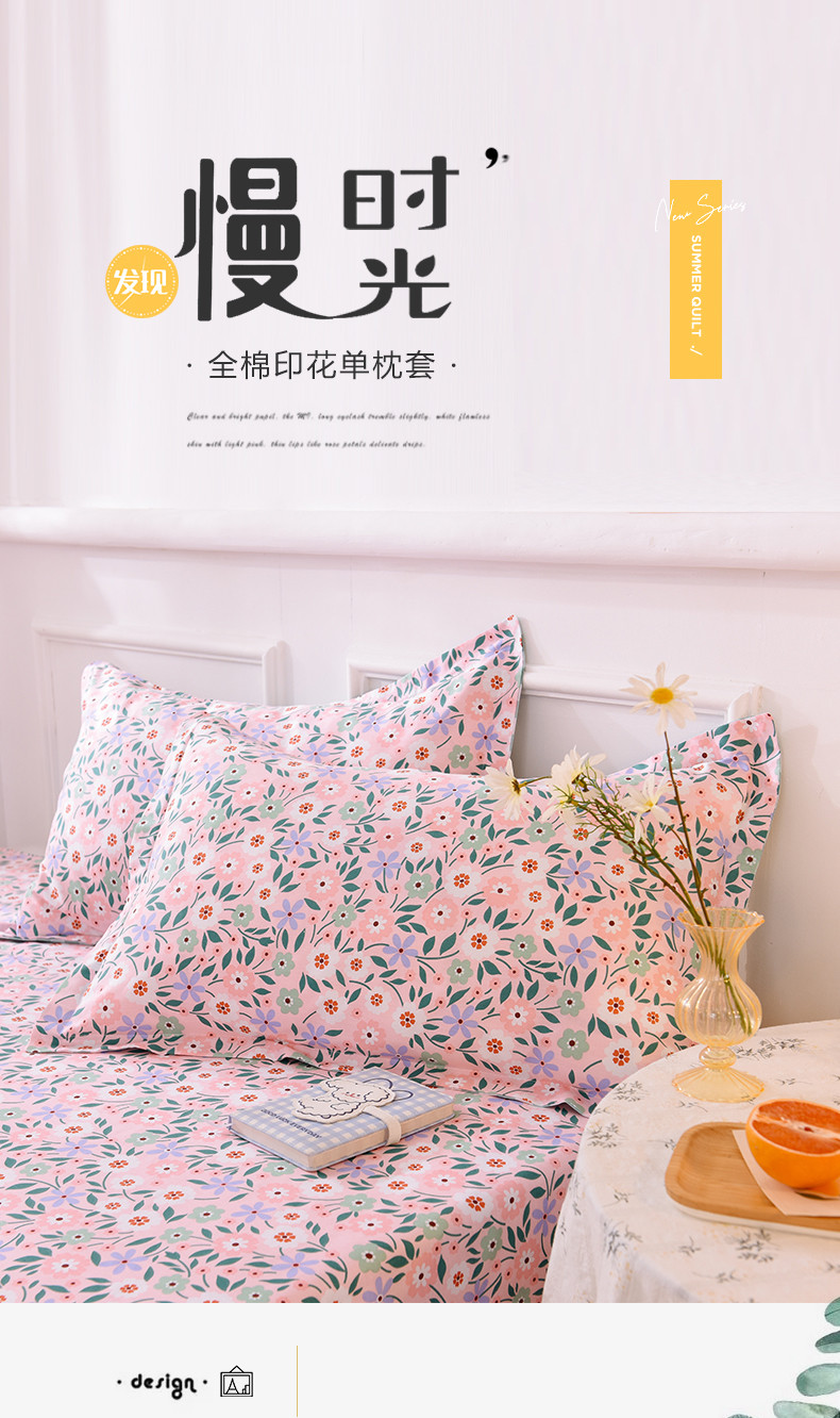 多品家纺 2023新款12868全棉双针单枕套 风铃花粉