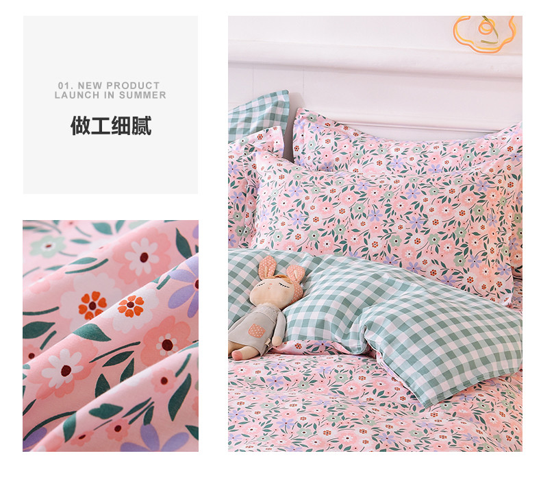 (总)多品家纺 2025新款云感双层纱高克重牛奶绒四件套,甜甜草莓,黛西紫,可爱新新,空谷兰香,蓝大格,猫猫小姐,木兰蝶,七里花香,十里春风,珍妮公主,紫大格