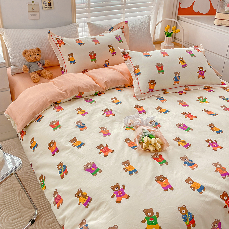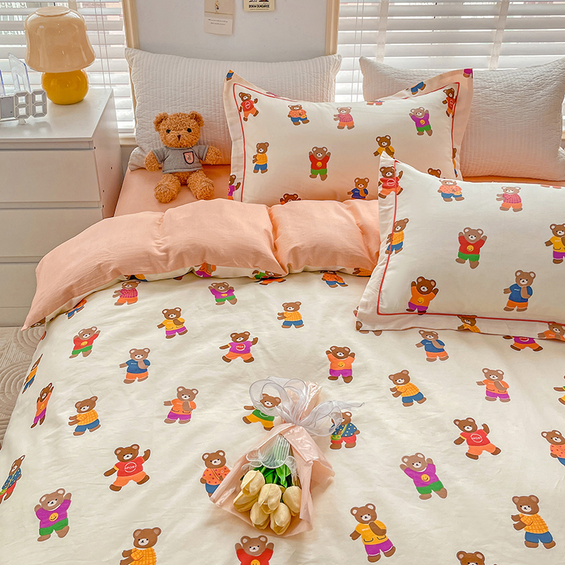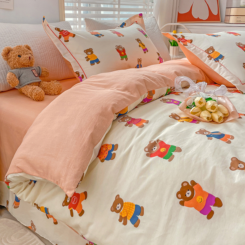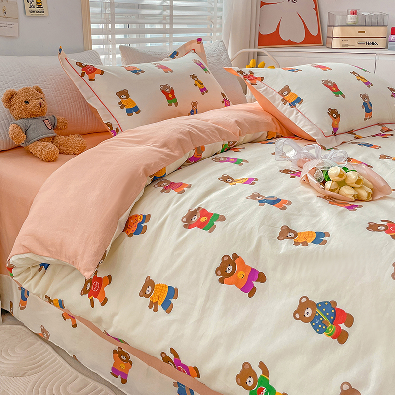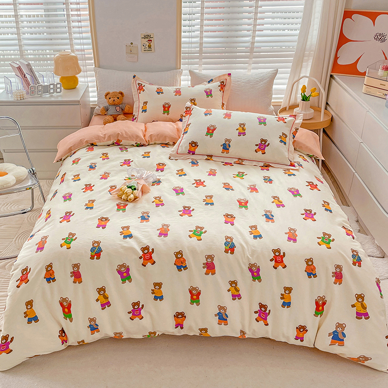 商品名称:乐童 2024新款网红直播爆款吊边+一字绣工艺款四件套(八) 趣味熊仔