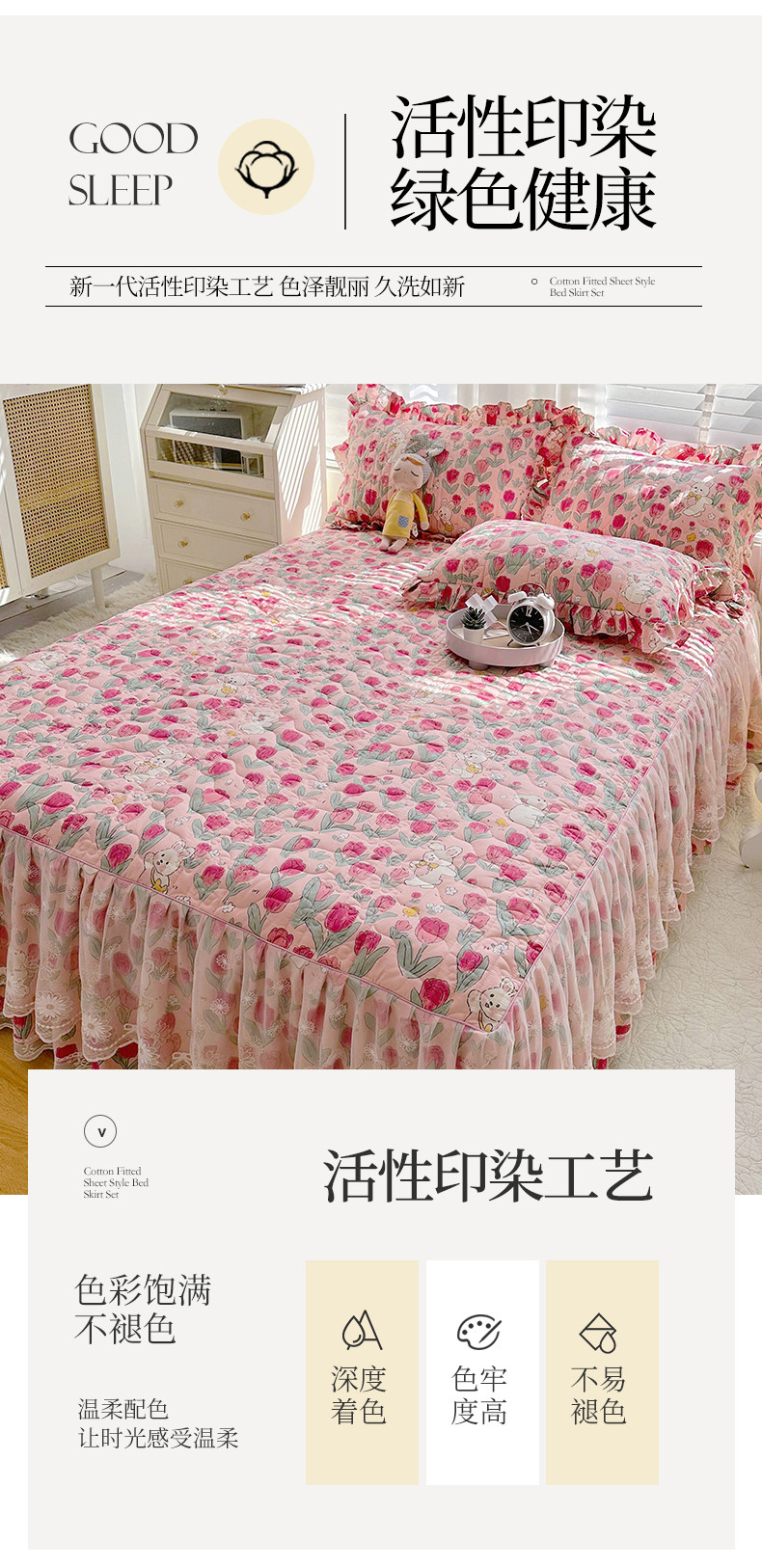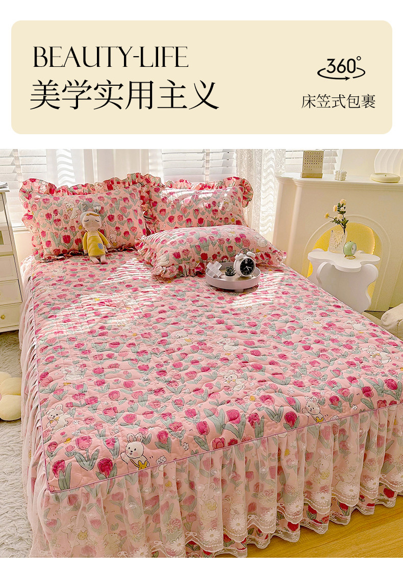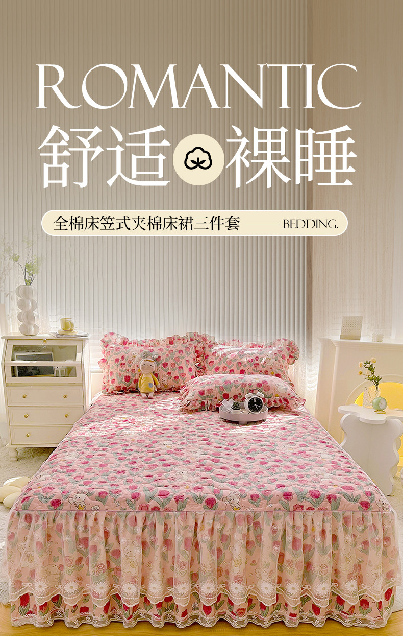 (总)宜凡家纺 2025新款全棉数码印花床裙三件套系列一,静若幽兰,浮云织梦,梦幻花园,陌上花开