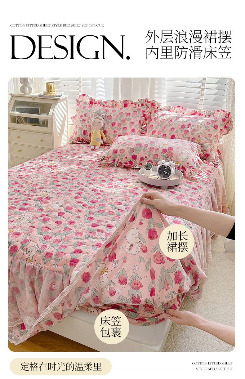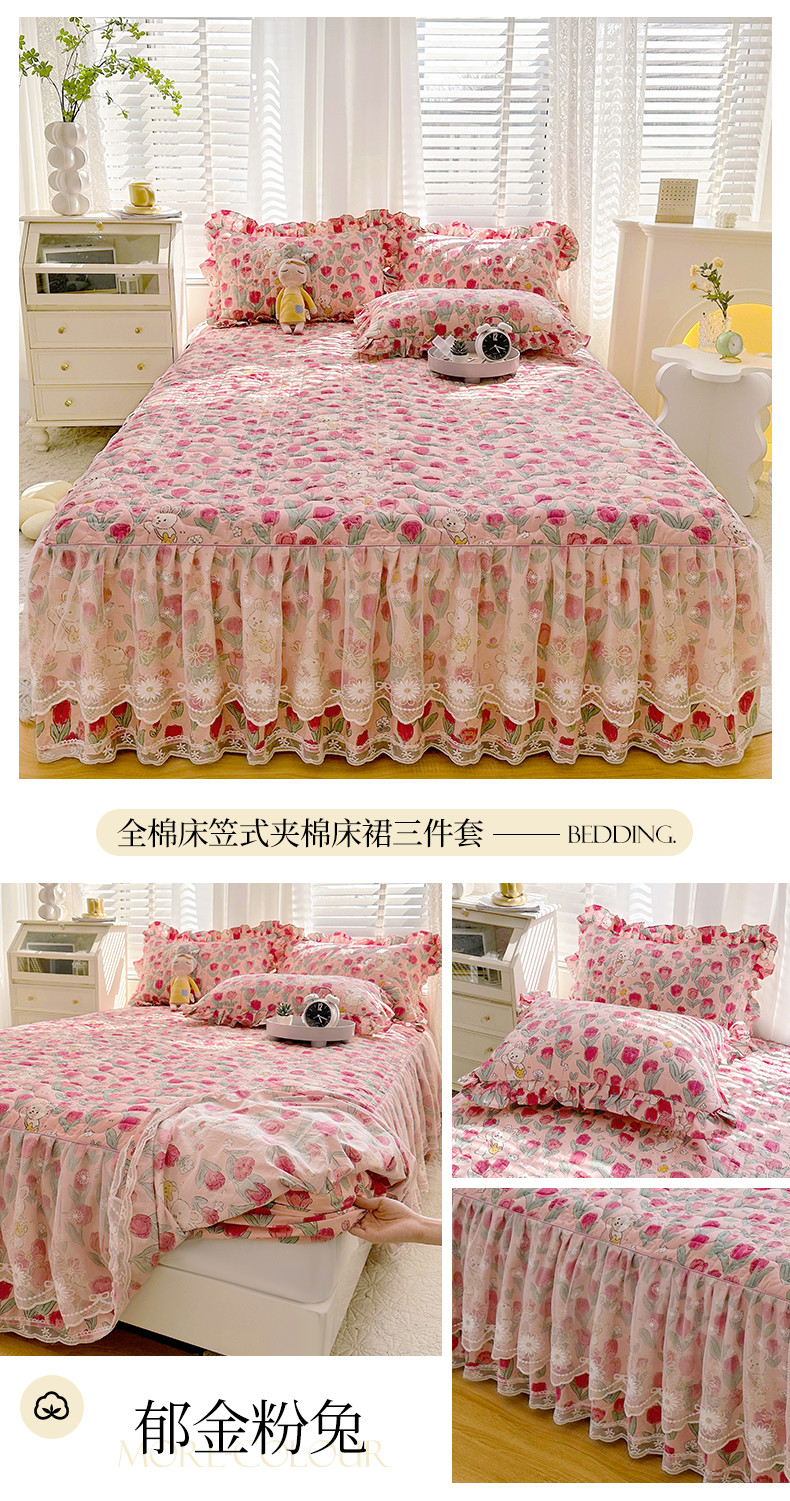 商品名称:宜凡 2023新款 全棉床笠式床裙三件套 郁金粉兔
