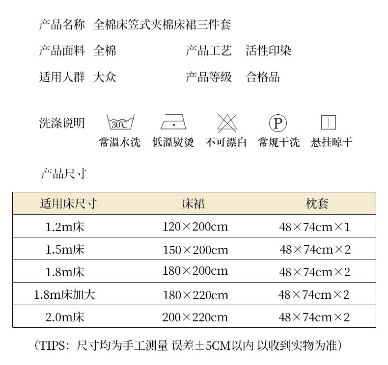 夹棉床裙180*220单件