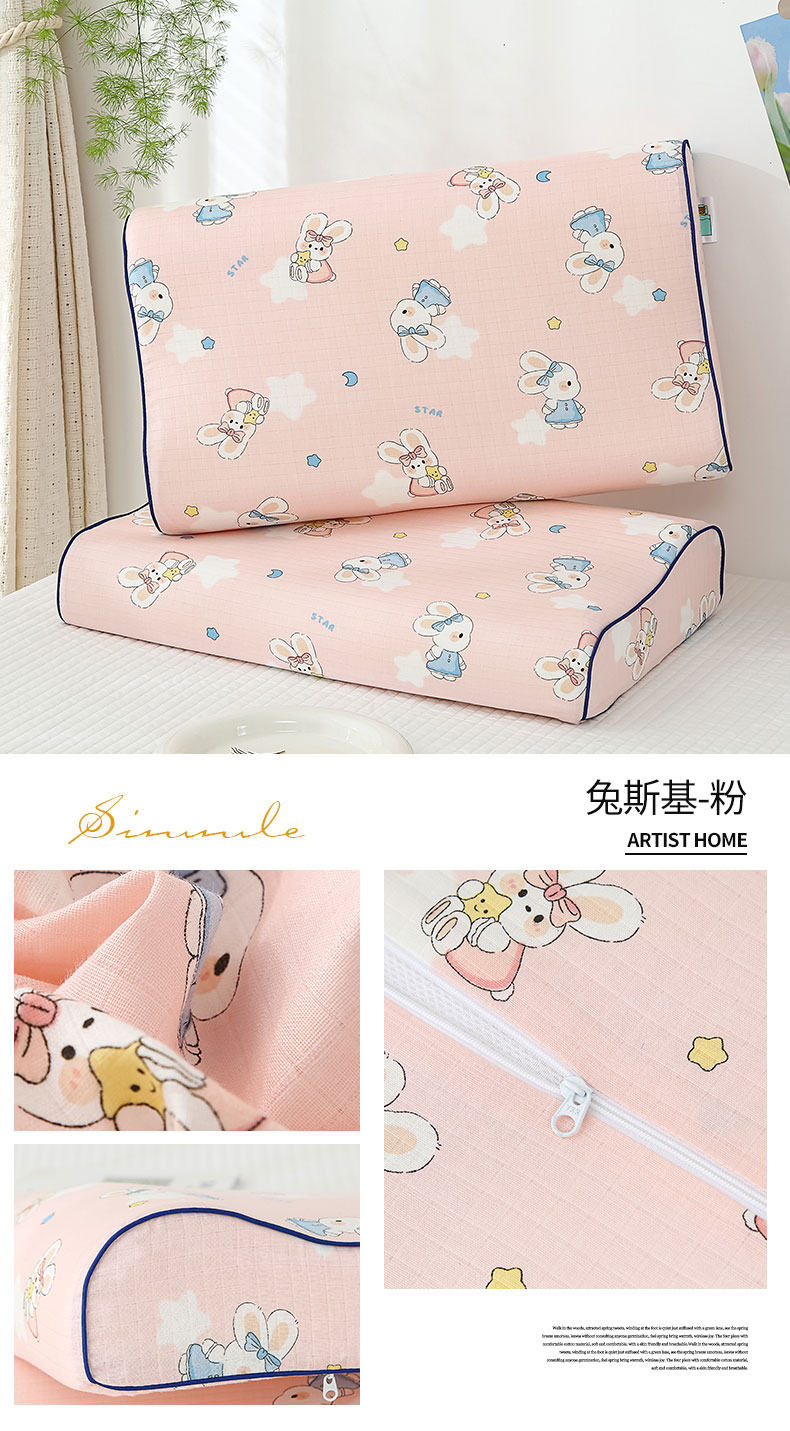 良佐生活 2023新款A类母婴级双层纱乳胶枕专用枕套 兔斯基粉