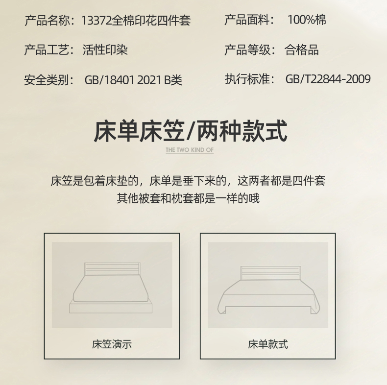 1.8m床笠款四件套(床笠180*200;被套220*240) | ¥135.00 |