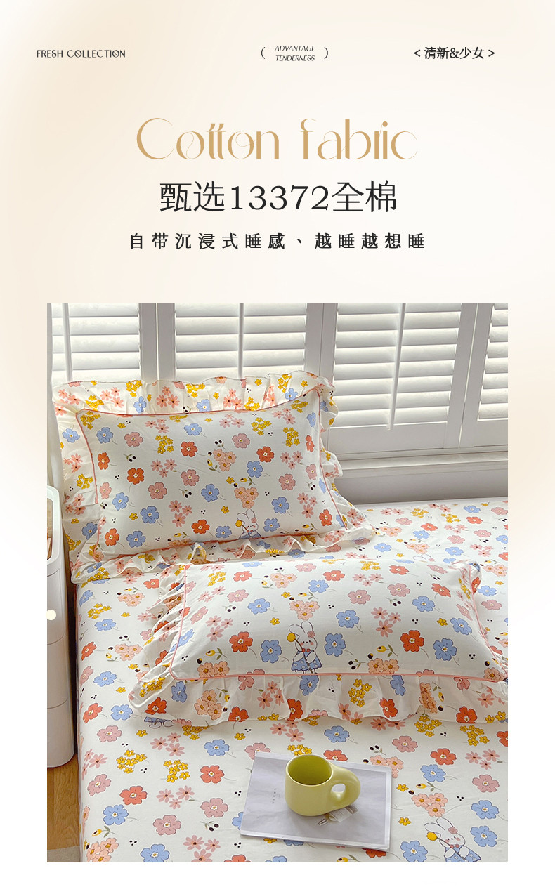 商品名称:宝齐莱 2023新款全棉13372韩版印花枕套 菲菲兔