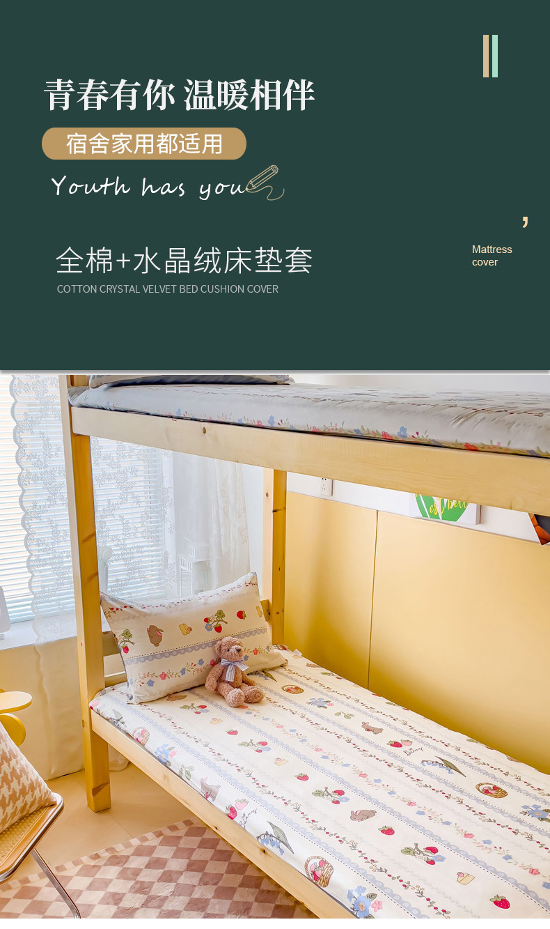 当前位置: 91家纺网 > 商品网购 > 床垫/床褥 > 普通床垫 > 金丝鸟 2023新款全棉加水晶绒棉加绒床垫套 蓝色花园
