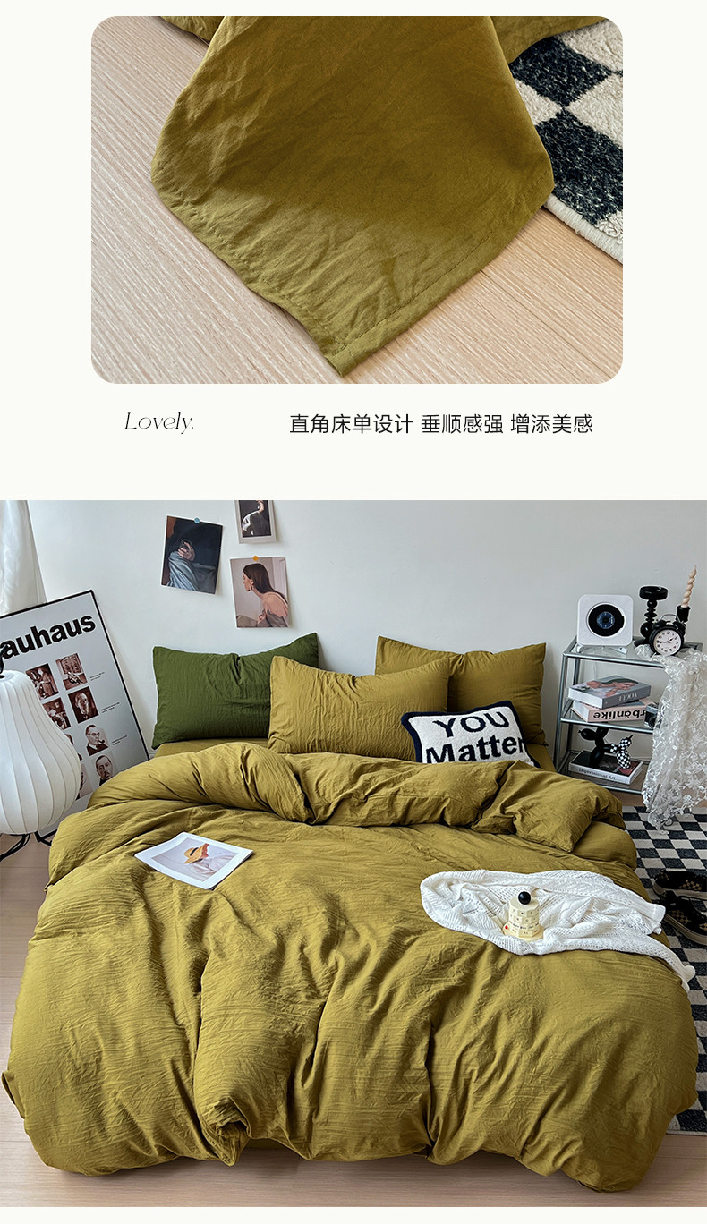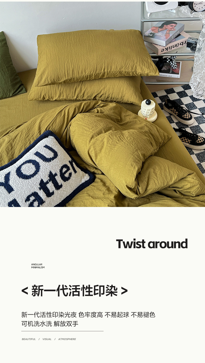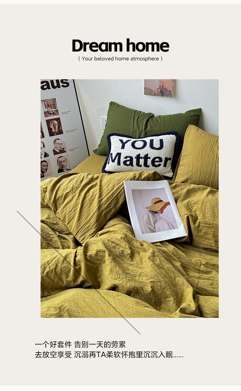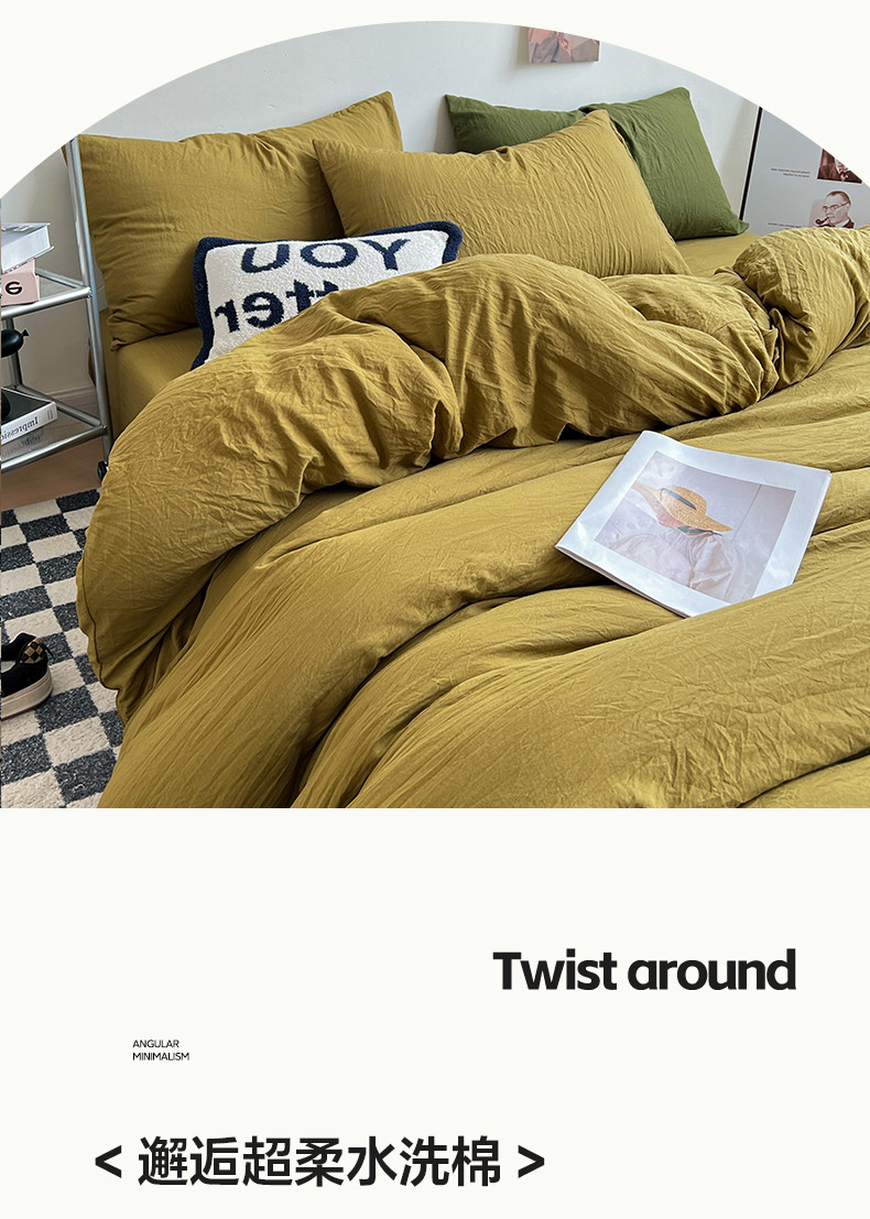 (总)水墨江南 2025新款亲肤磨毛水洗棉纯色四件套,翡绿,暗夜绿,碧蓝,橄榄绿,墨灰,浅灰深灰,雅白,藻绿米黄,中驼
