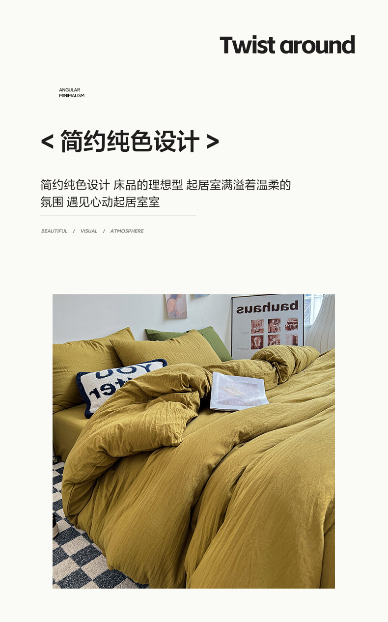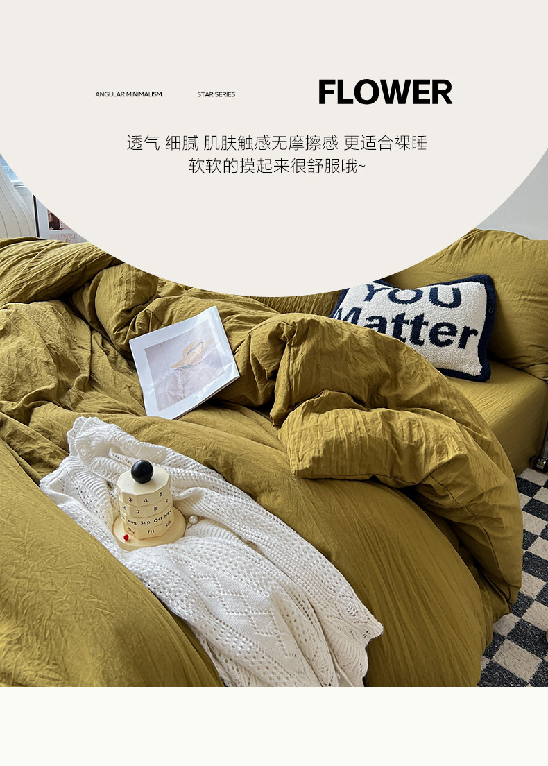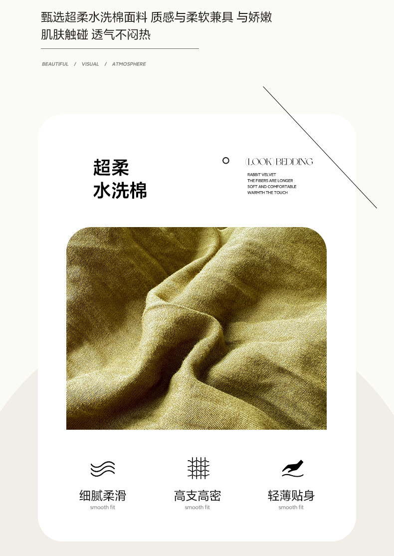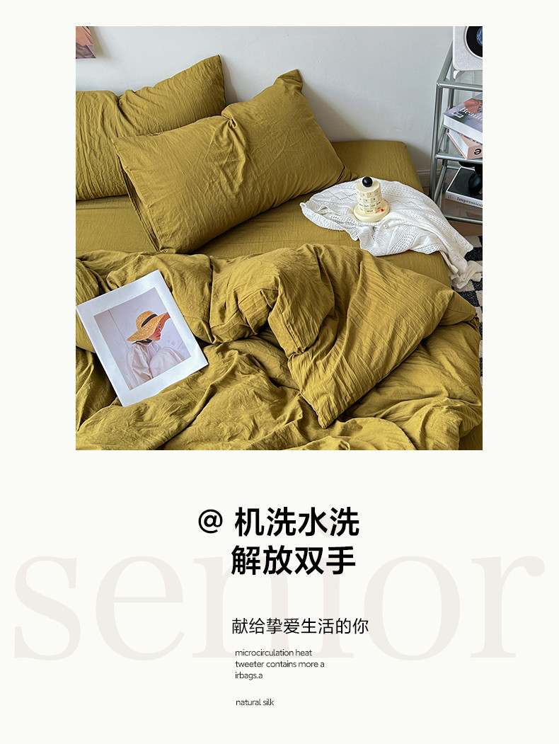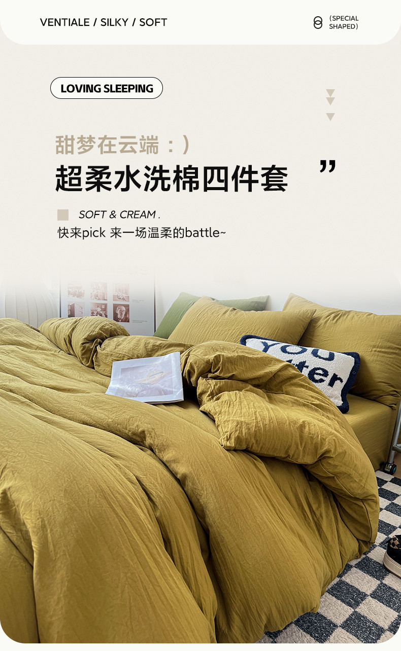 (总)水墨江南 2025新款亲肤磨毛水洗棉纯色四件套,翡绿,暗夜绿,碧蓝,橄榄绿,墨灰,浅灰深灰,雅白,藻绿米黄,中驼