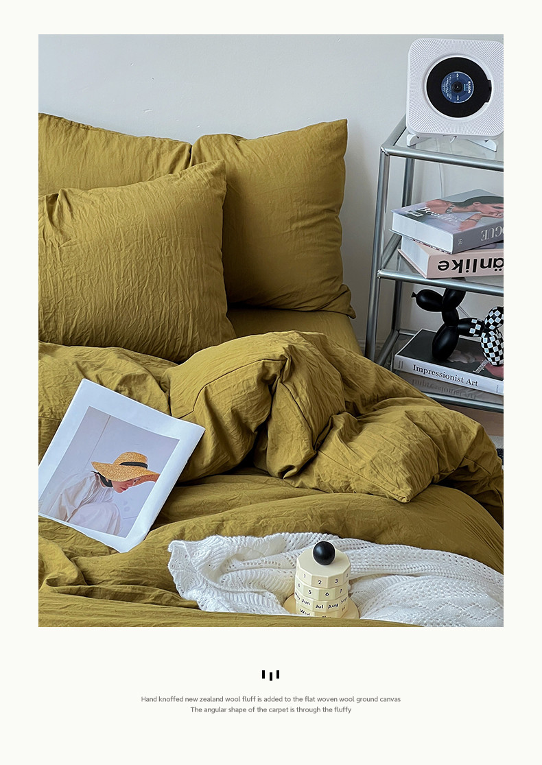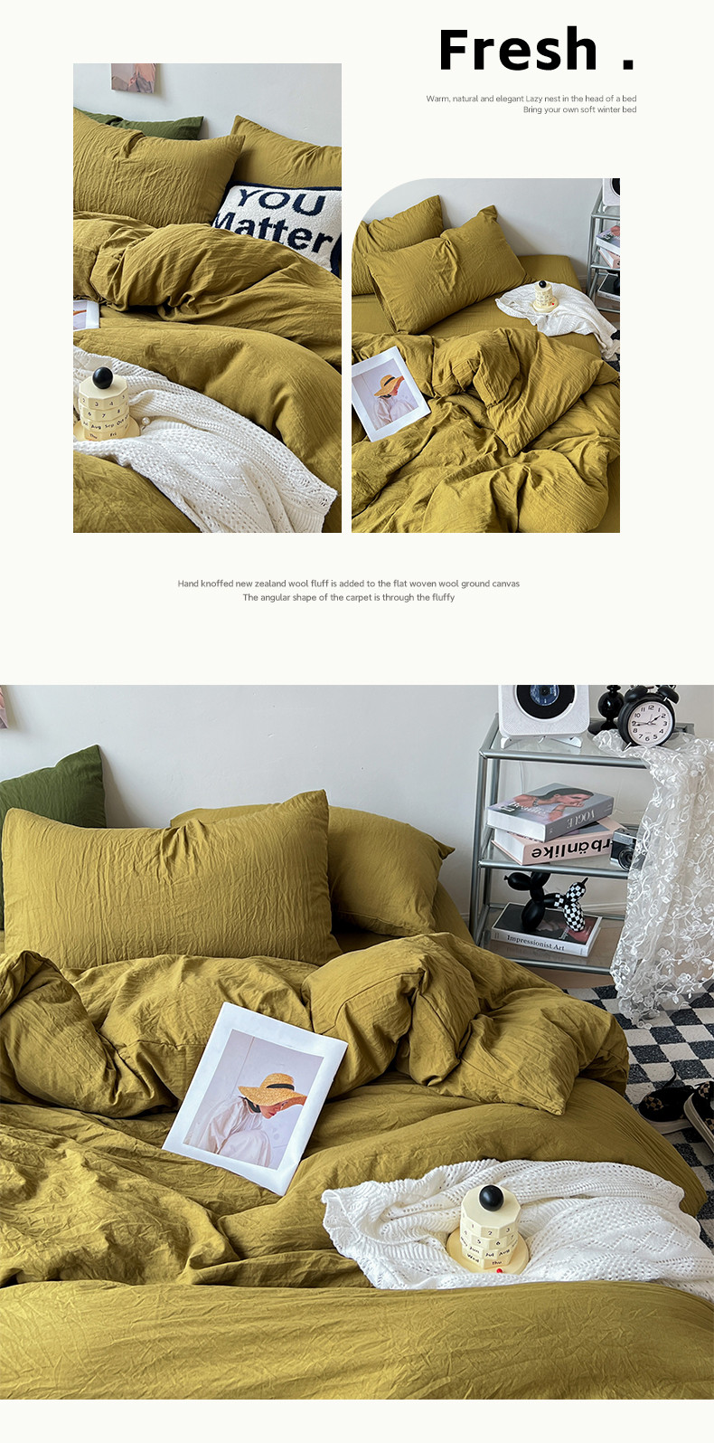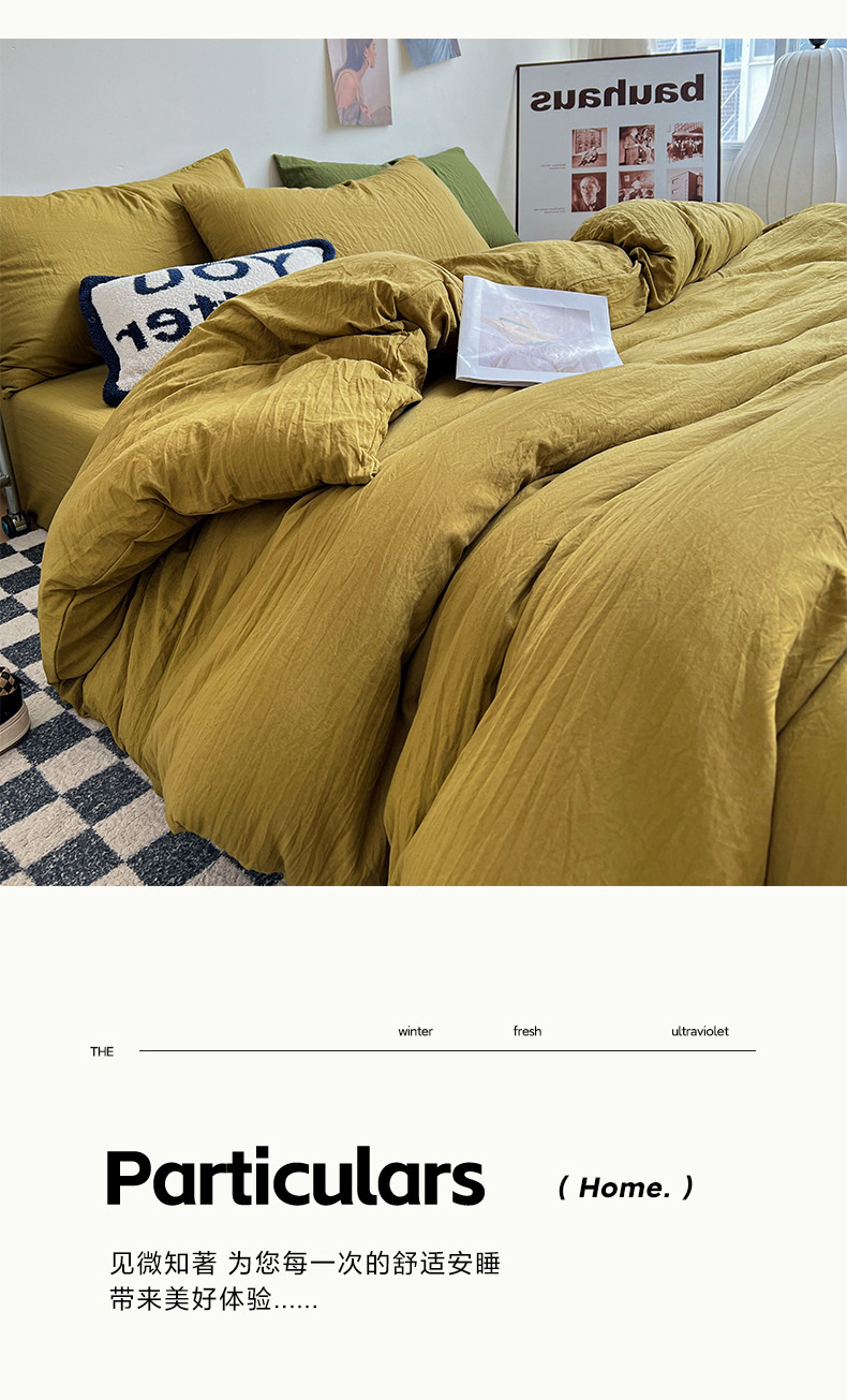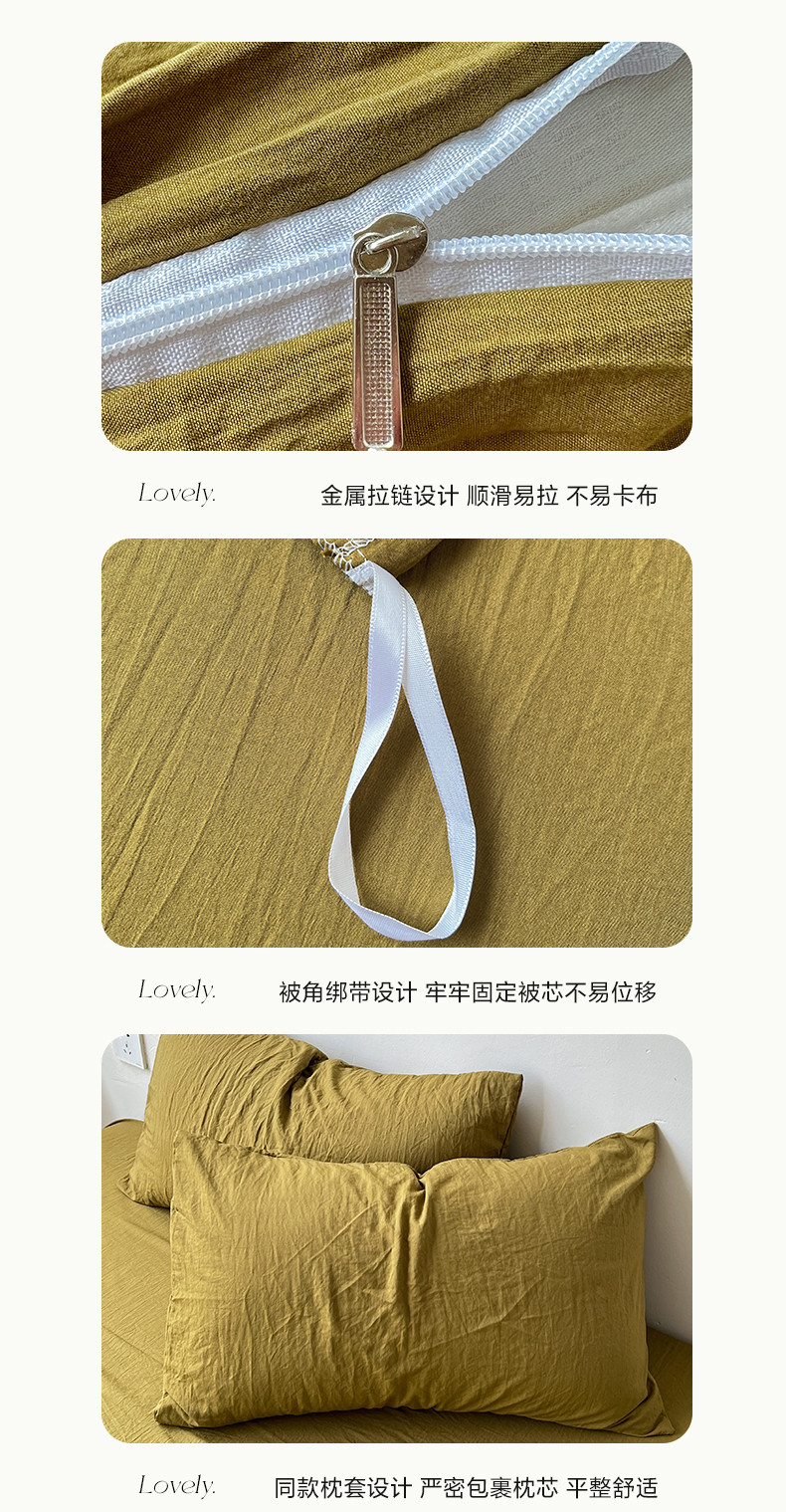 (总)水墨江南 2025新款亲肤磨毛水洗棉纯色四件套,翡绿,暗夜绿,碧蓝,橄榄绿,墨灰,浅灰深灰,雅白,藻绿米黄,中驼