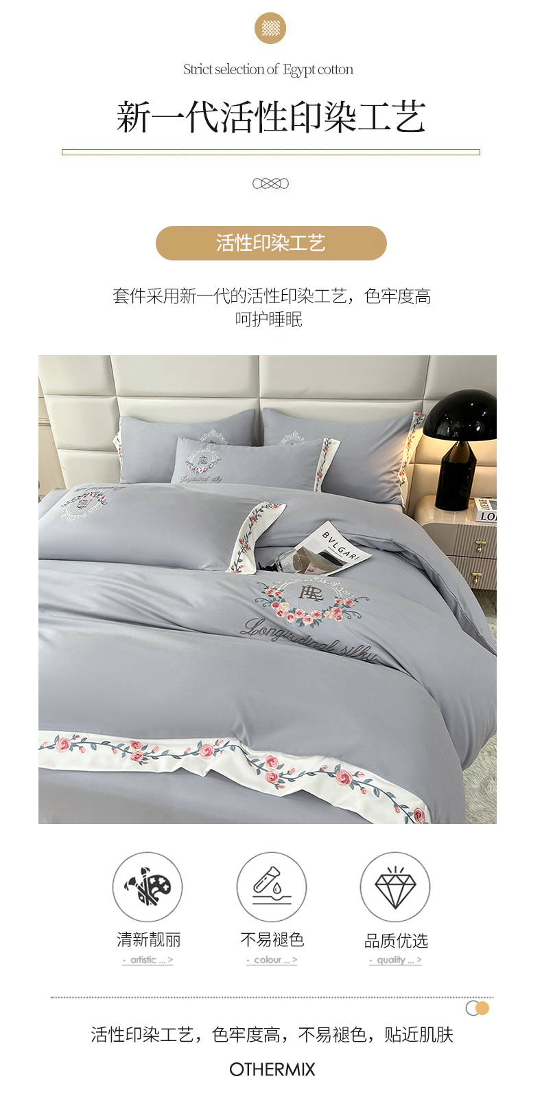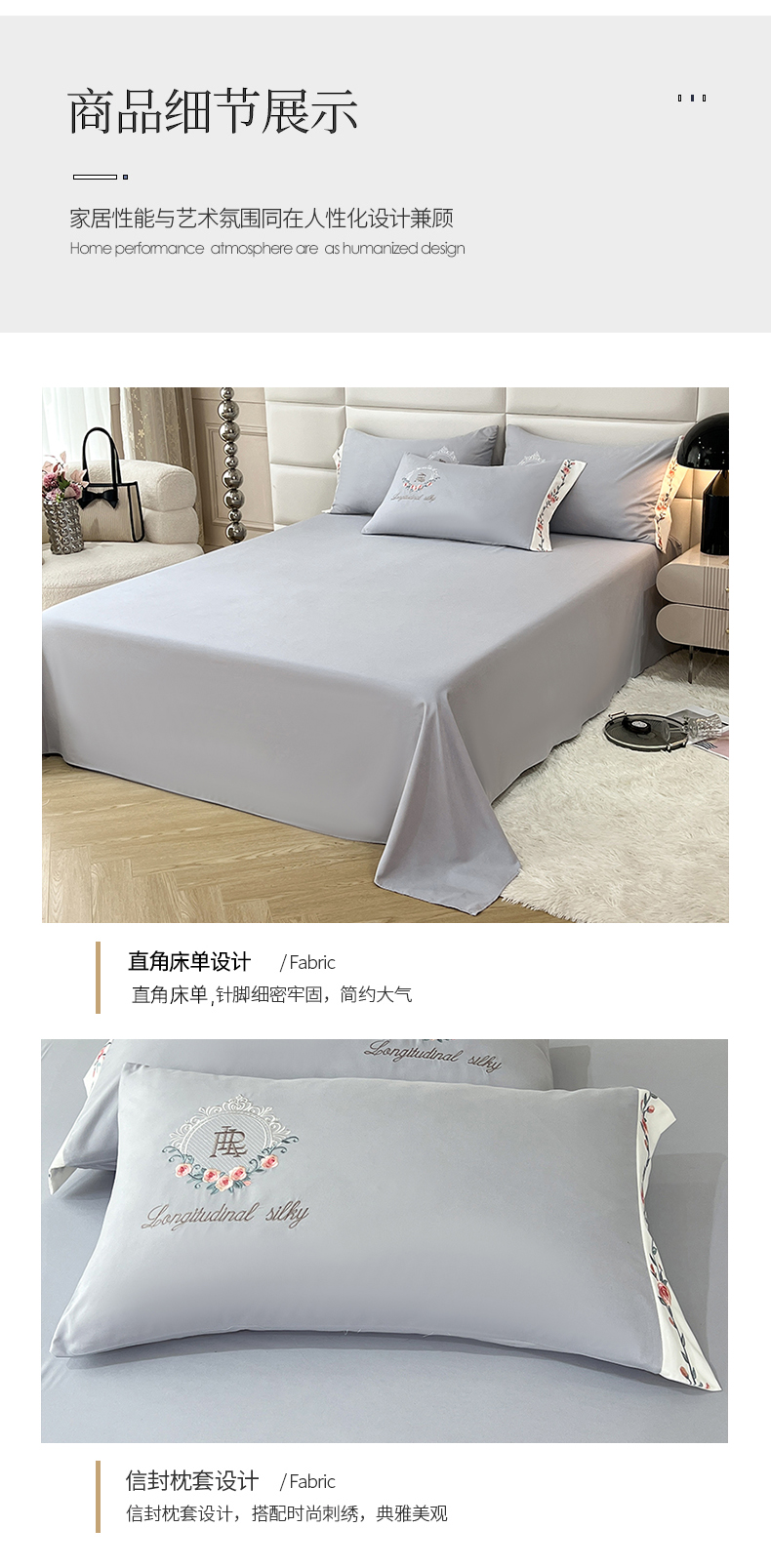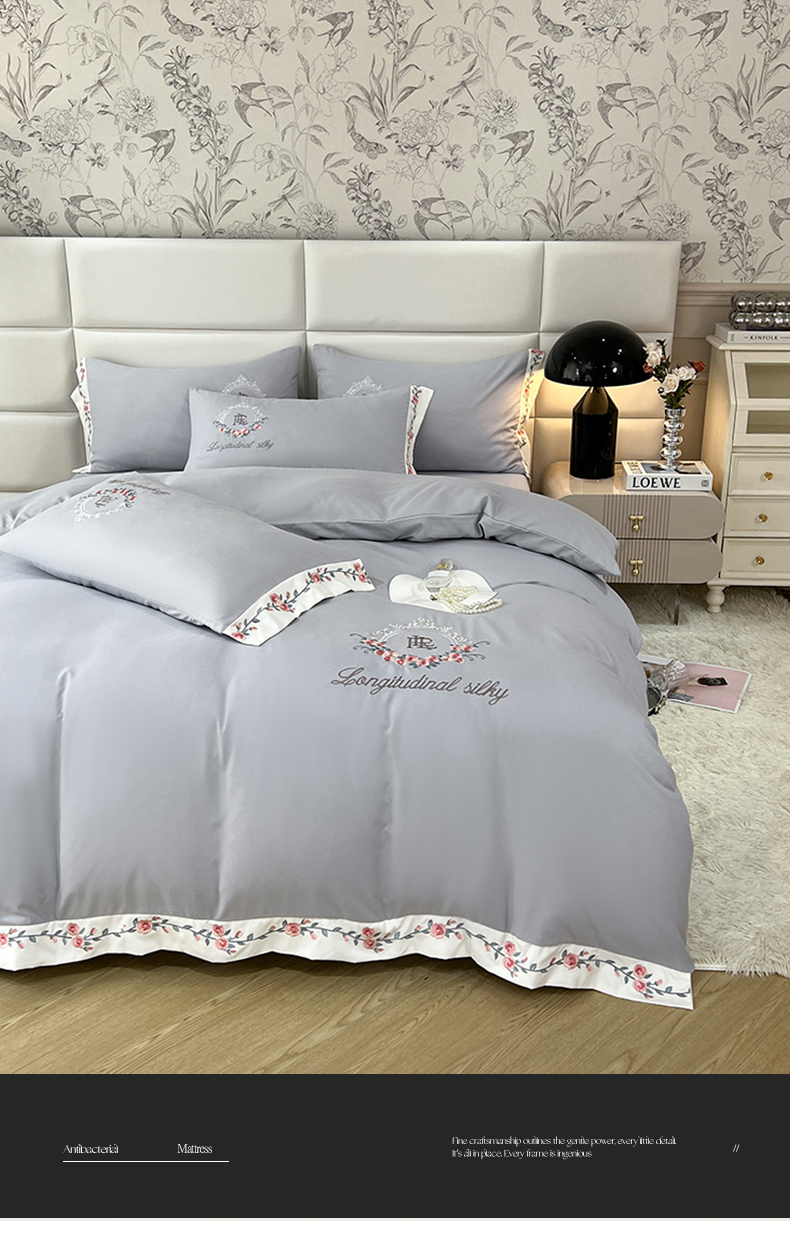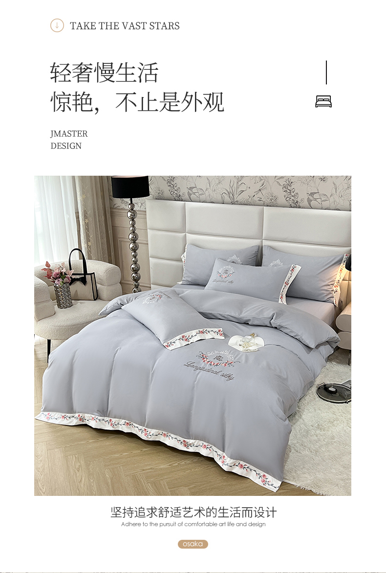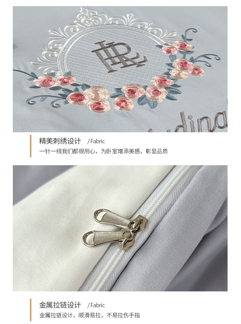 商品名称:易辰美 2024新款A类高克重水洗磨毛云柔棉刺绣四件套 绅士灰