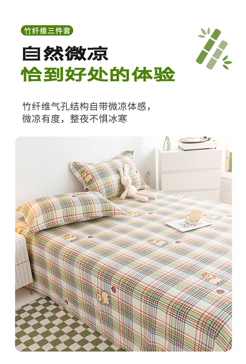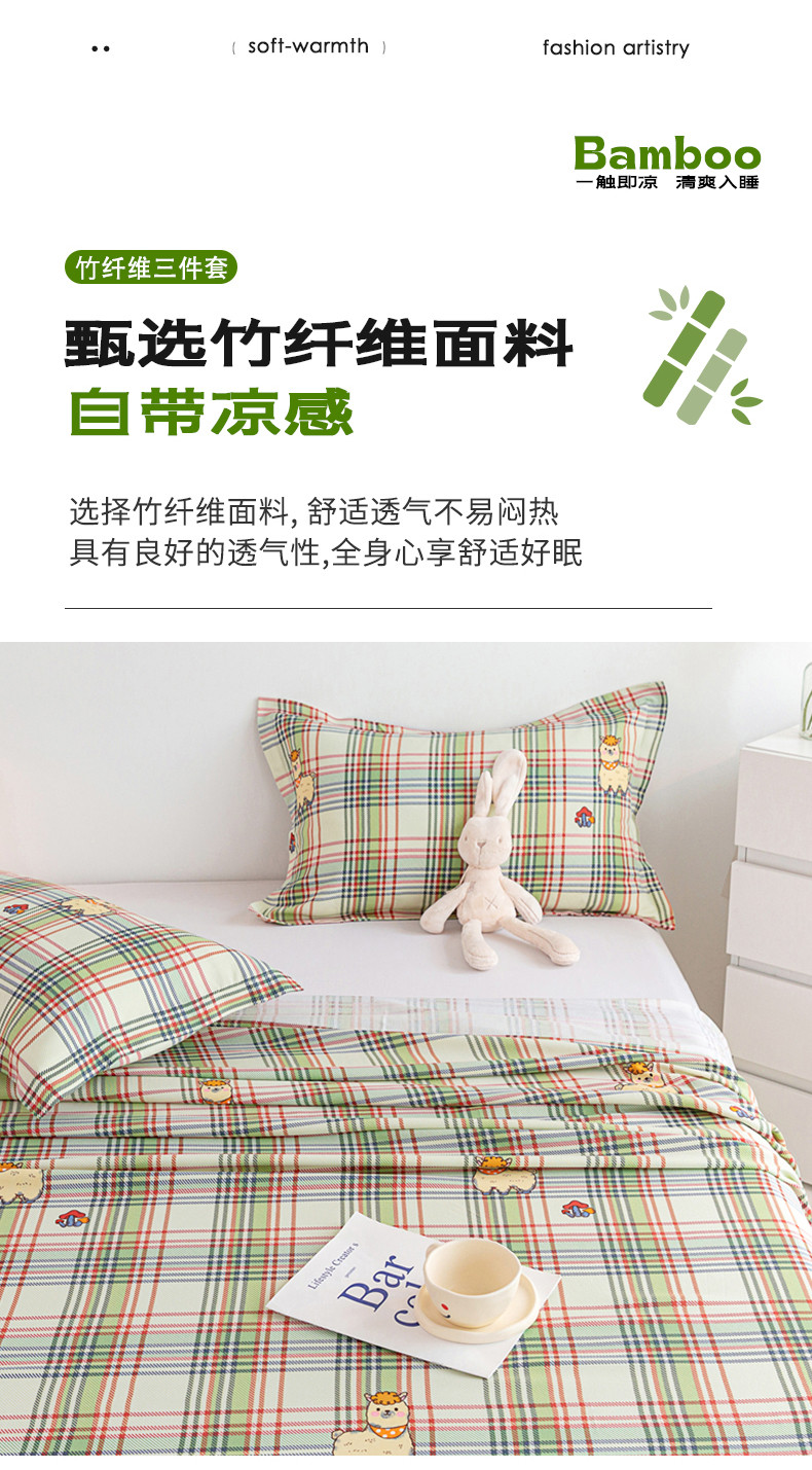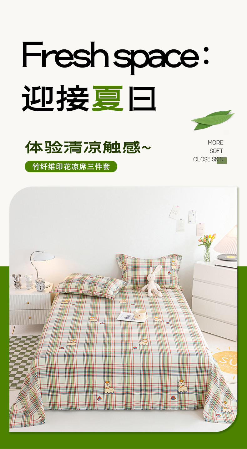 商品名称:首爱 2025新款竹纤维凉席三件套 欢乐羊-绿