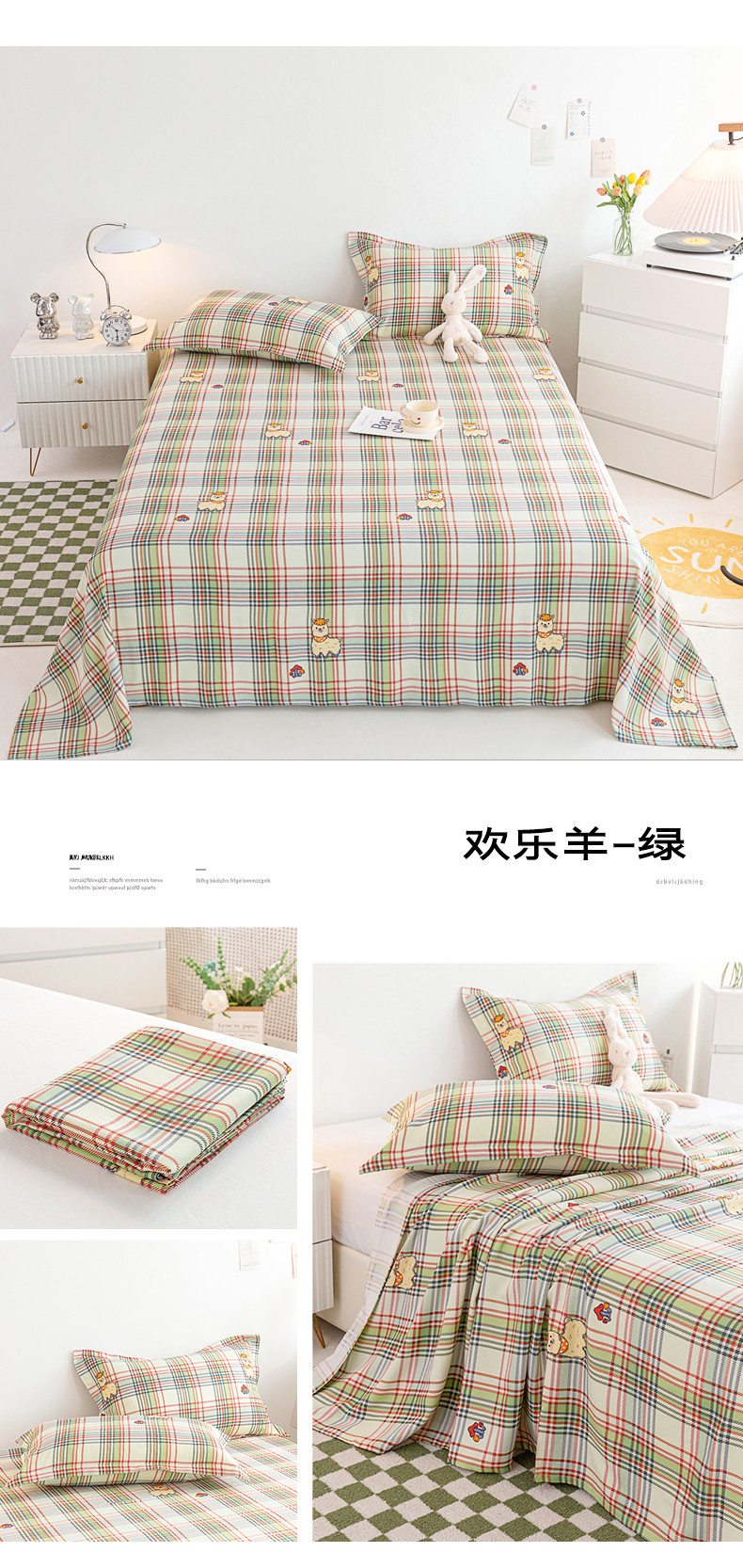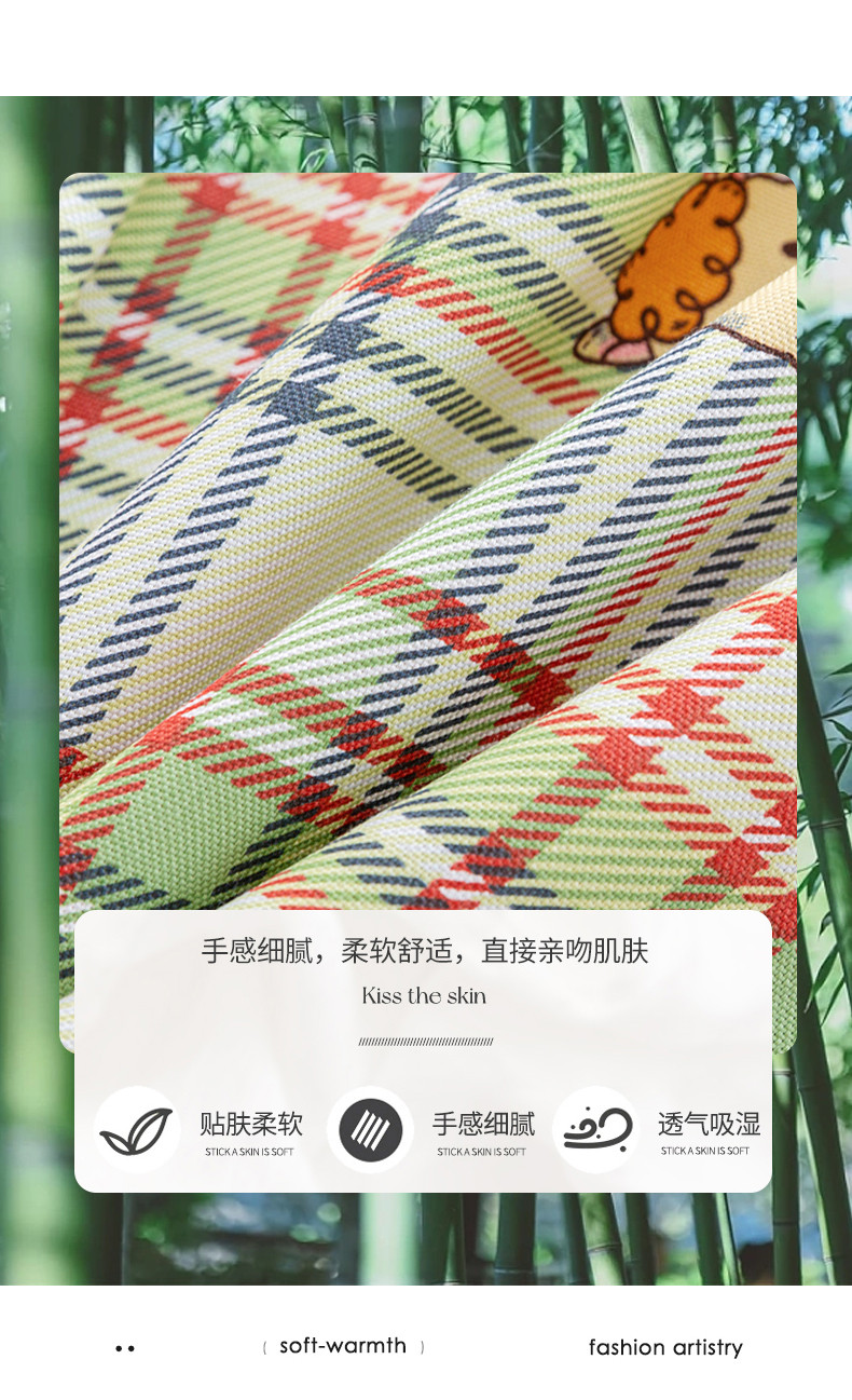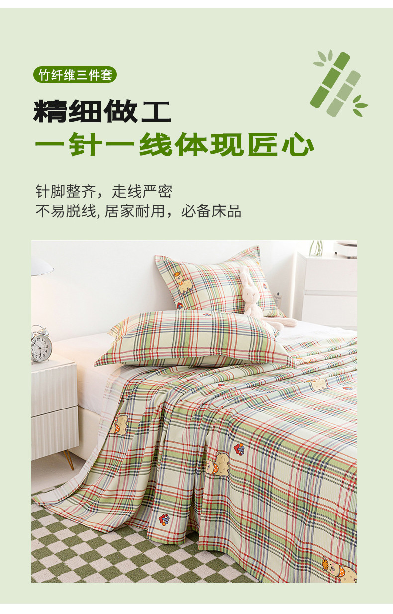 商品名称:首爱 2025新款竹纤维凉席三件套 欢乐羊-绿