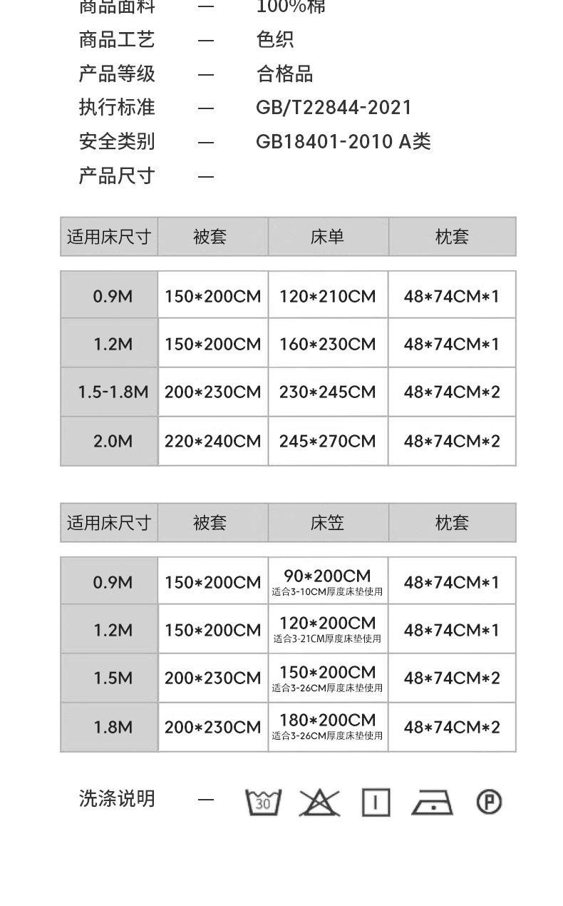 0.9m床笠三件套(被套150*200,床笠90*200+15cm) | ¥77.00 |