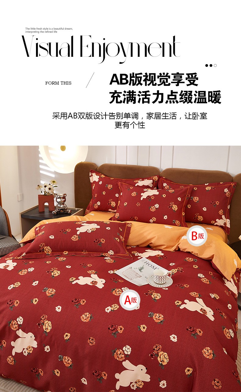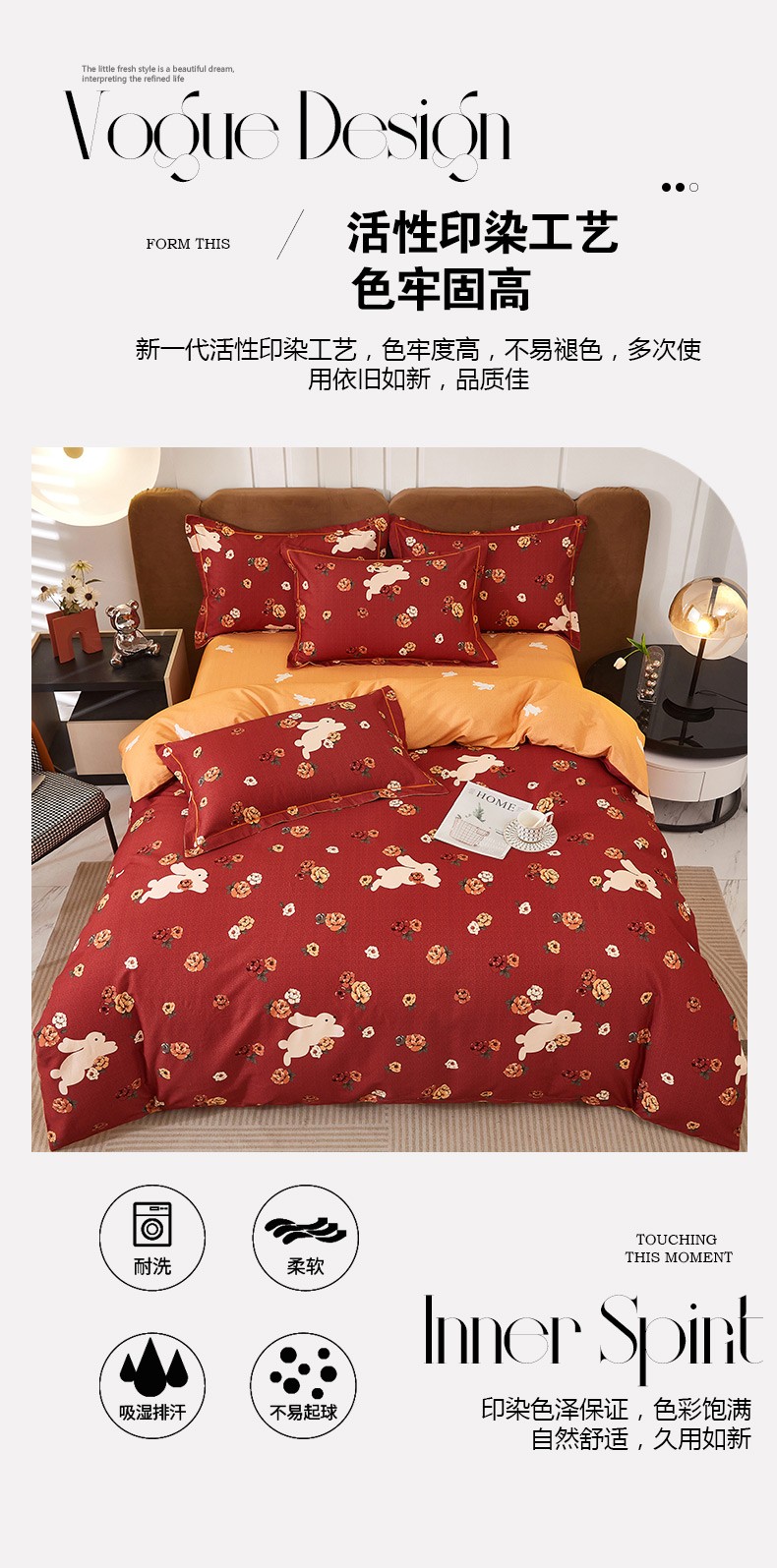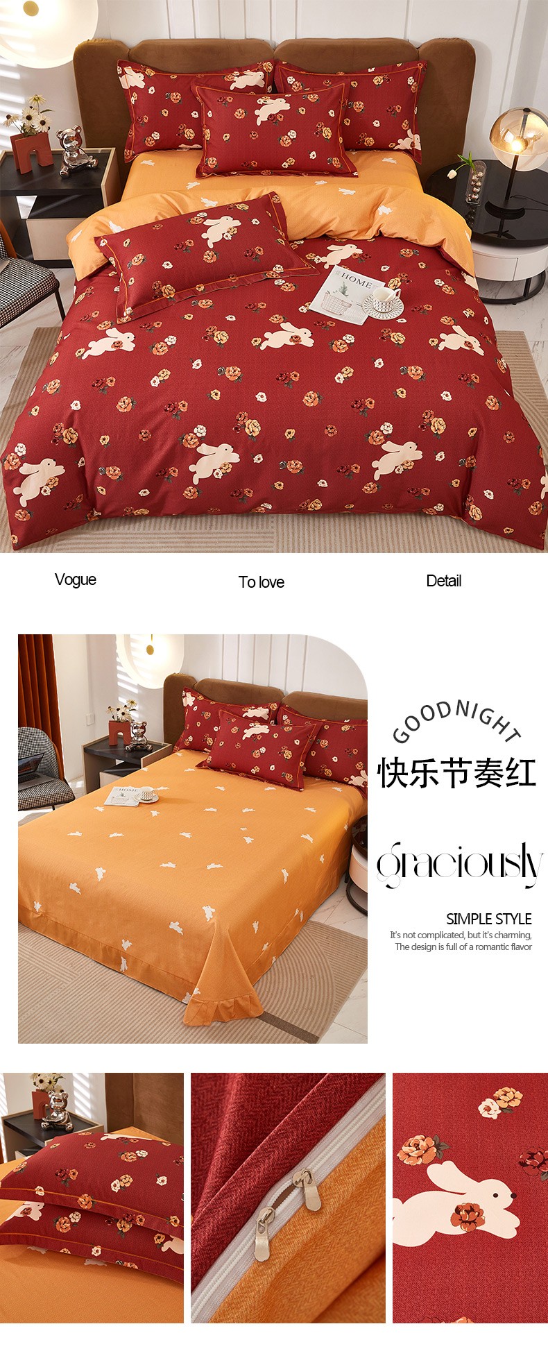 商品名称:雲归梦 2023年新款加厚全棉生态磨毛大版四件套 快乐节奏-红