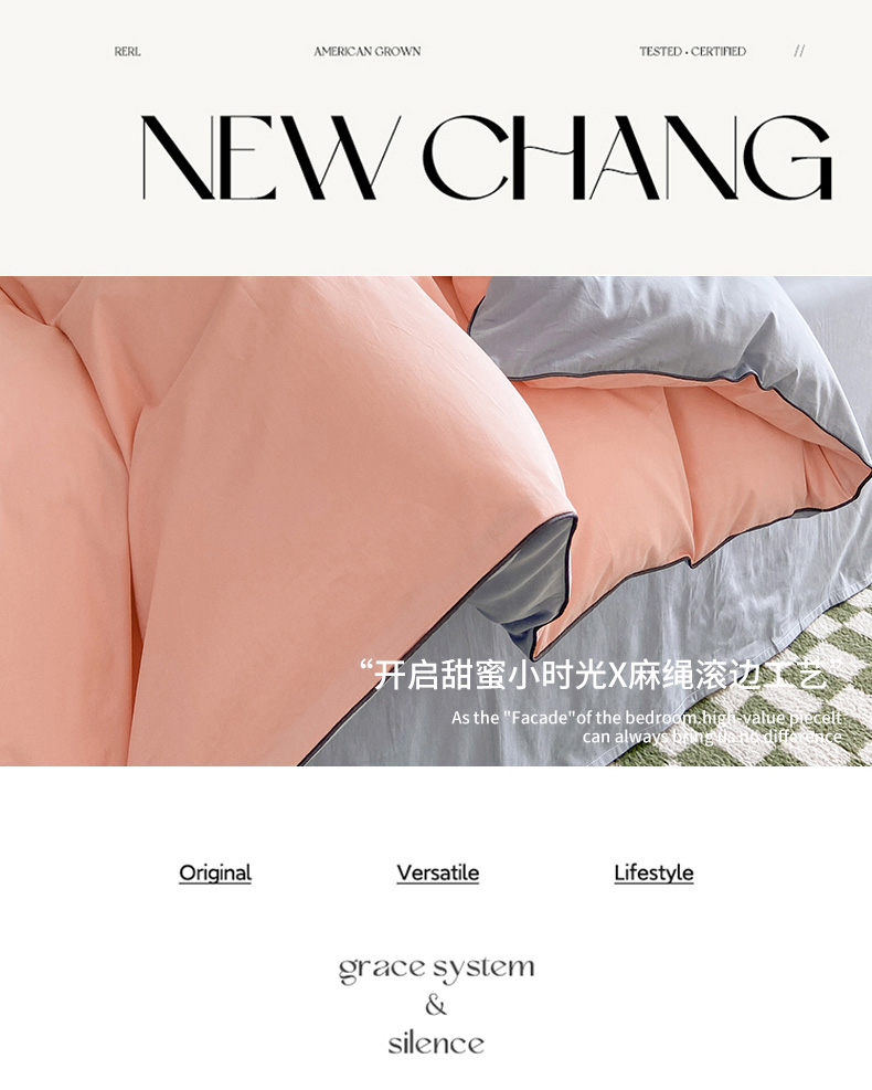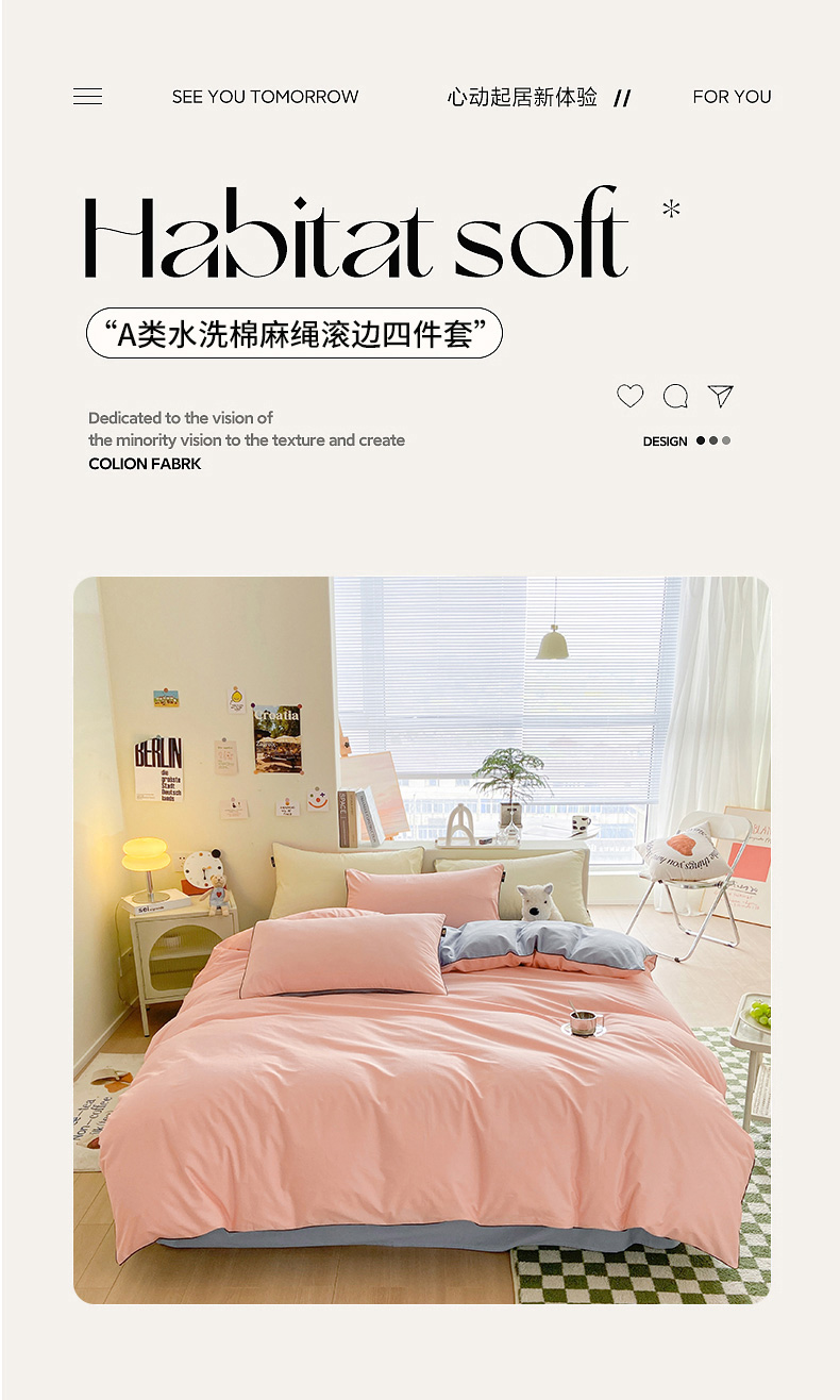 当前位置: 91家纺网 > 商品网购 > 床品套件 > 四件套 > 水洗棉四件套 > 眠帛家居 2023新款A类芝士系列水洗棉麻绳滚边四件套 芝士奶油粉蓝灰