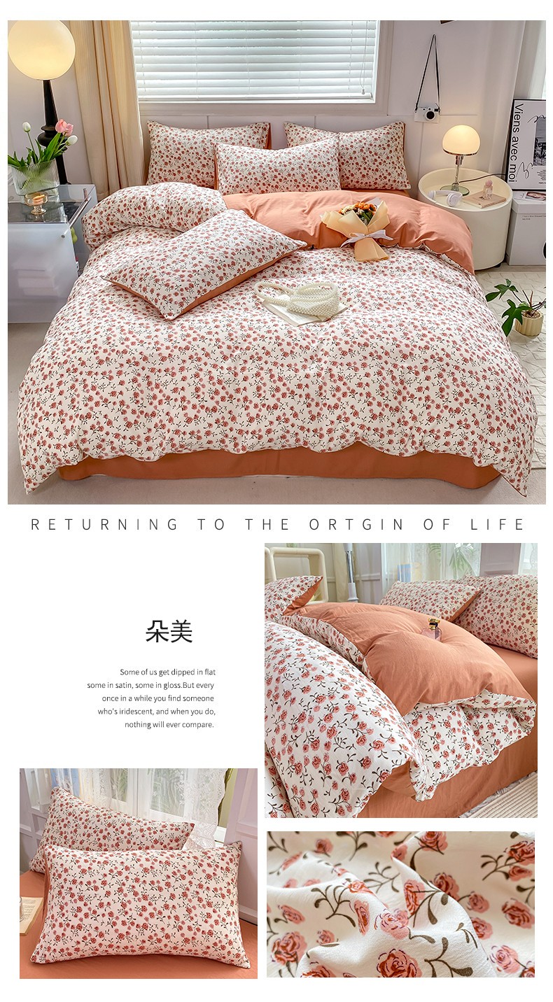 商品名称:红日子 2024新款水洗棉麻双层纱四件套 朵美
