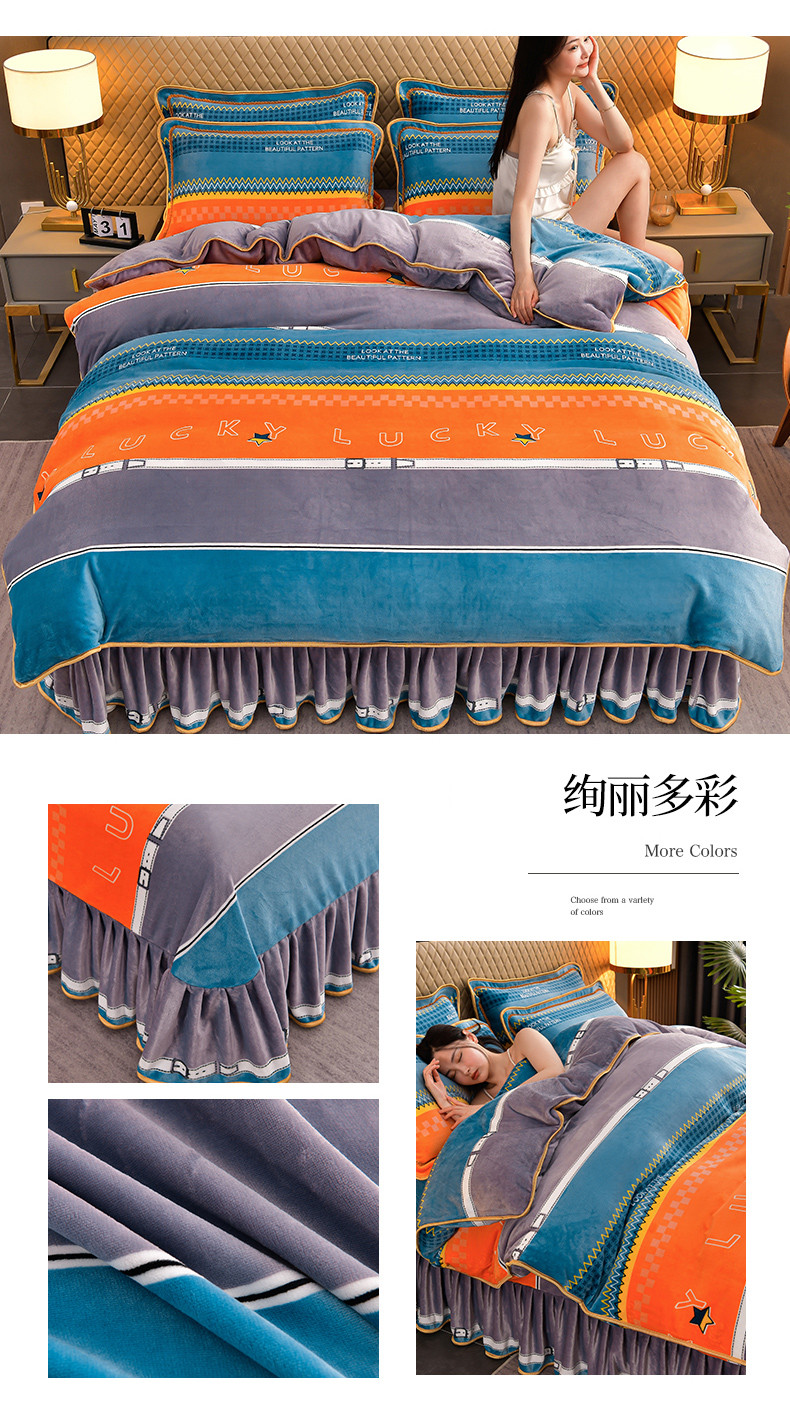 韩秀2025新款金貂牛奶法莱绒床裙款四件套加厚保暖8.5斤金雕绒 绚丽多彩,绚丽多彩