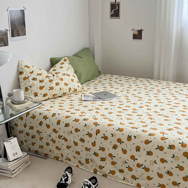 直播热款水洗棉双层纱四件套碎花简约风床单单品单件 抹茶绿+小橘子