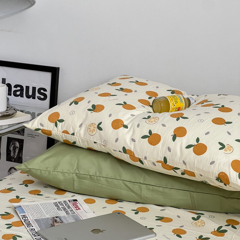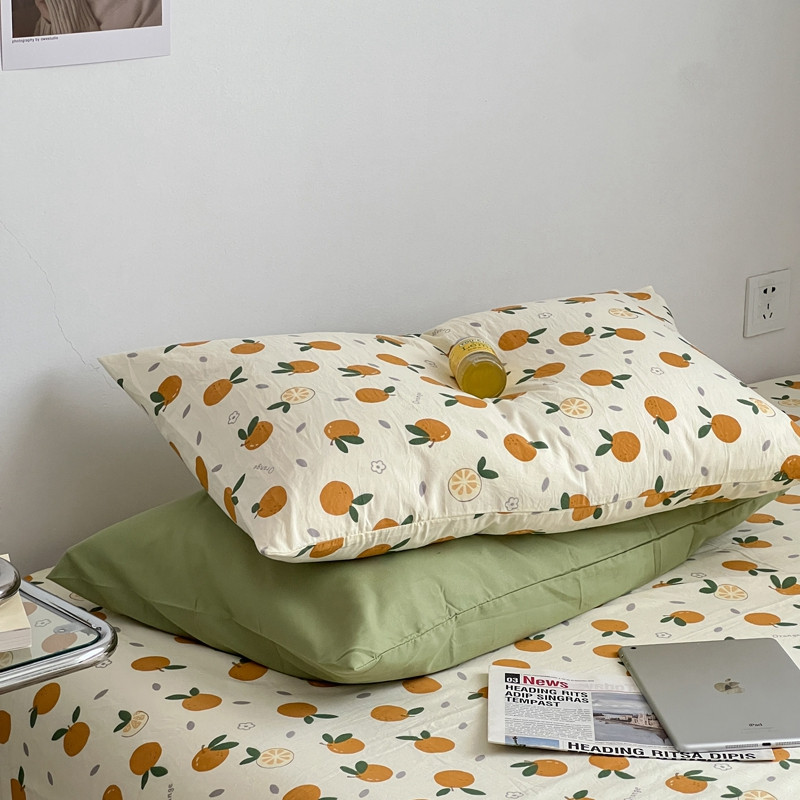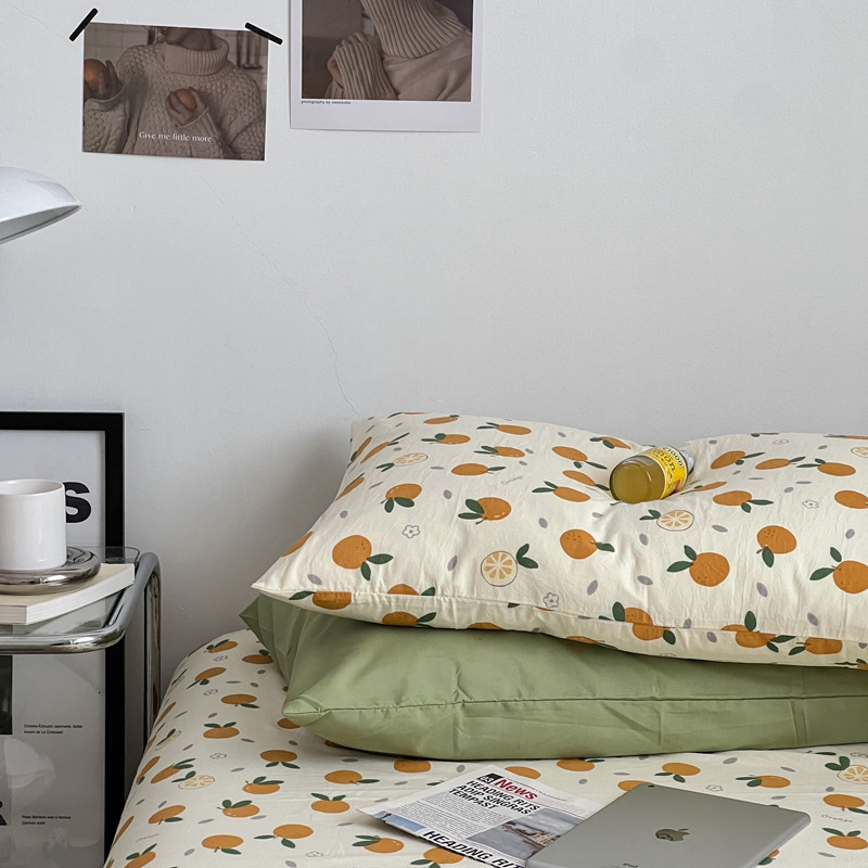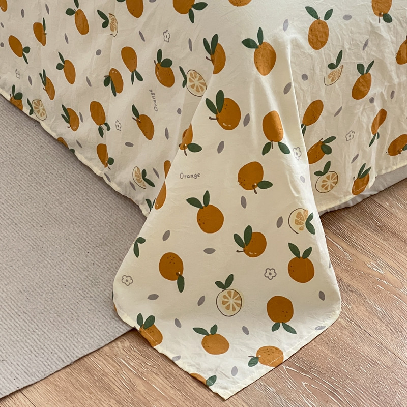 商品名称:直播热款水洗棉双层纱四件套碎花简约风床单单品单件 抹茶绿+小橘子