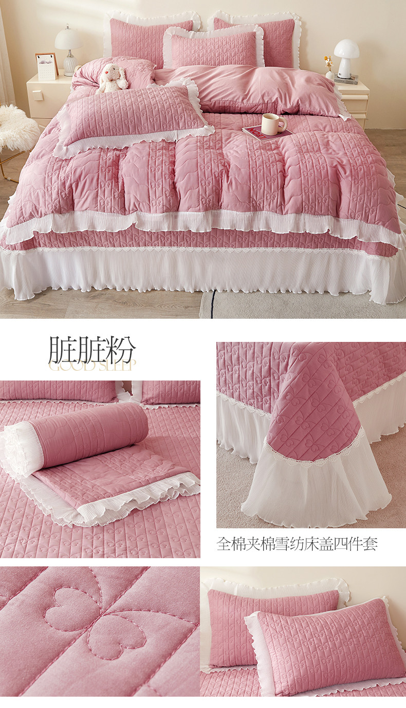 (总)宜凡家纺 2025新款兔绒提花牛奶绒夹棉床裙四件套,爱心 少女粉,爱心 粉紫,爱心 驼色,蝶舞 大红,蝶舞 米色,蝶舞 浅紫,蝶舞 玉色,简爱 苍青,简爱 豆沙紫,简爱 玉色,樱桃 苍青,樱桃 豆沙紫,樱桃 奶油白