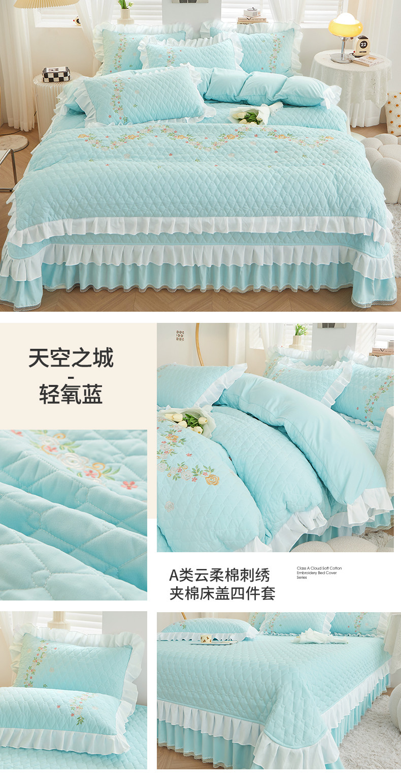 当前位置: 91家纺网 > 商品网购 > 床上用品 > 床盖 > 宜凡 2023新款A类云柔棉床盖夹棉四件套 轻氧蓝