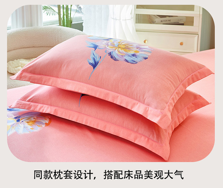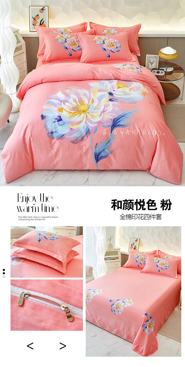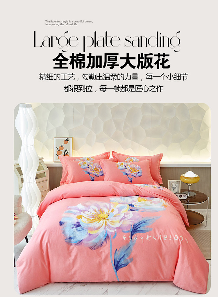雲归梦 2023年新款加厚全棉生态磨毛大版四件套 和颜悦色粉
