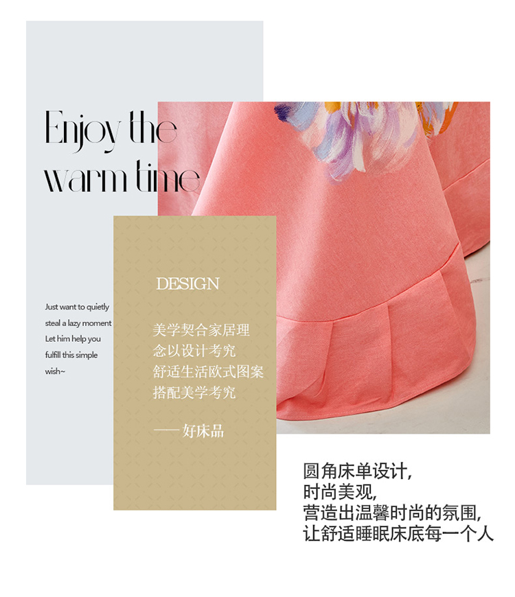 商品名称:雲归梦 2023年新款加厚全棉生态磨毛大版四件套 和颜悦色粉