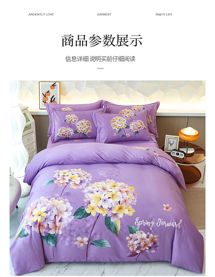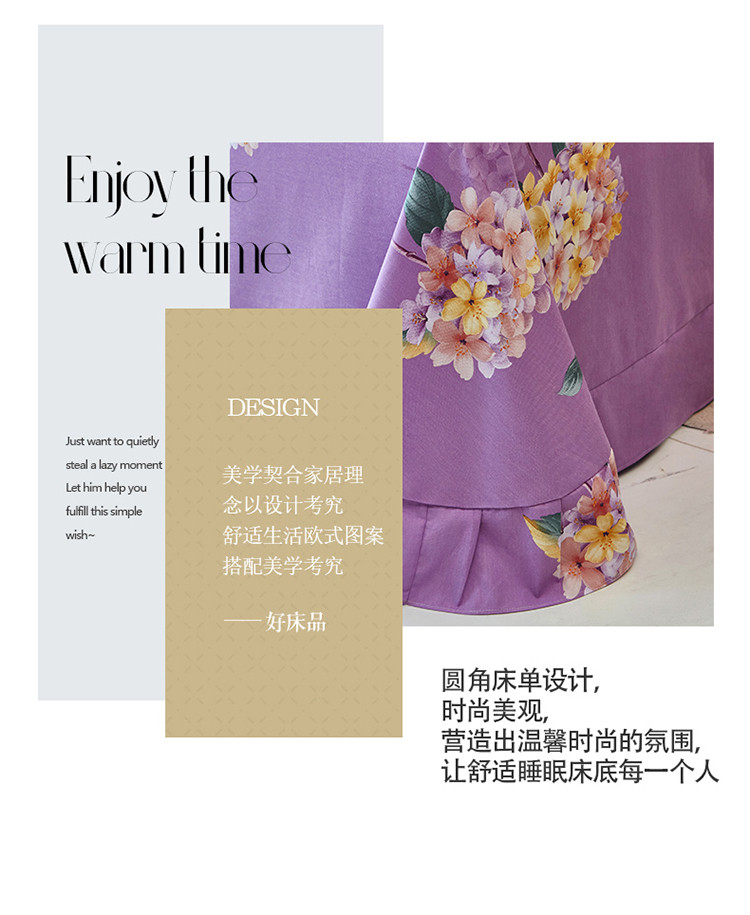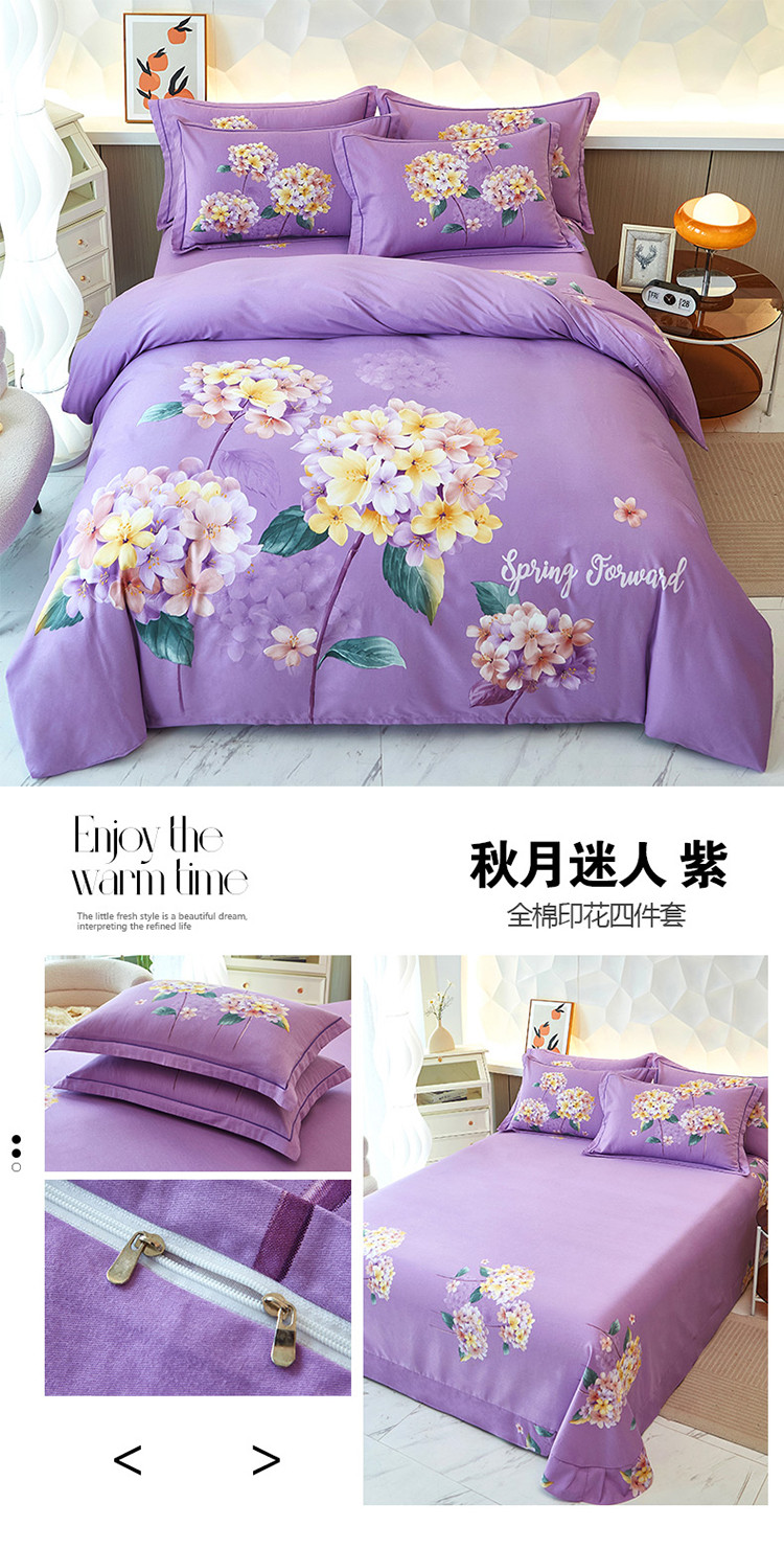 商品名称:雲归梦 2023年新款加厚全棉生态磨毛大版四件套 秋月迷人紫
