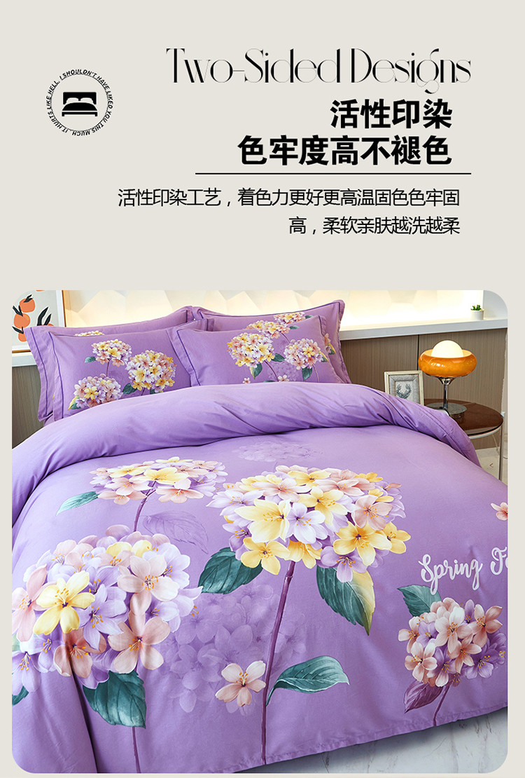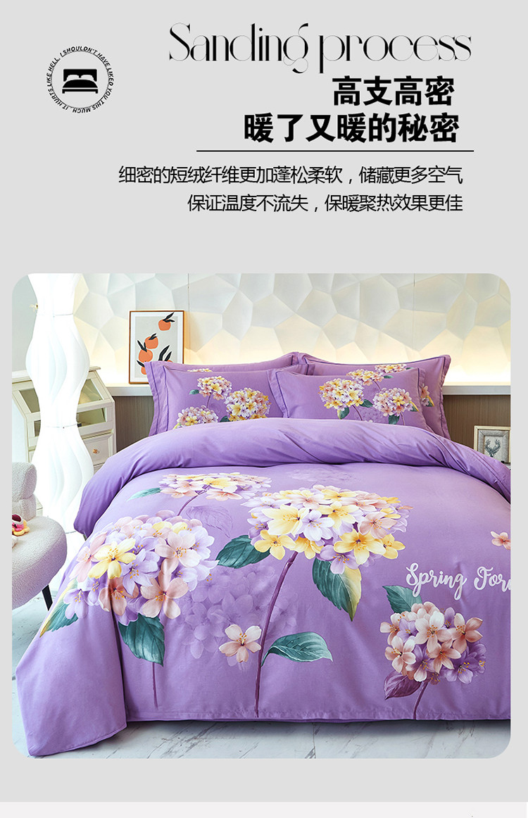 雲归梦 2023年新款加厚全棉生态磨毛大版四件套 秋月迷人紫