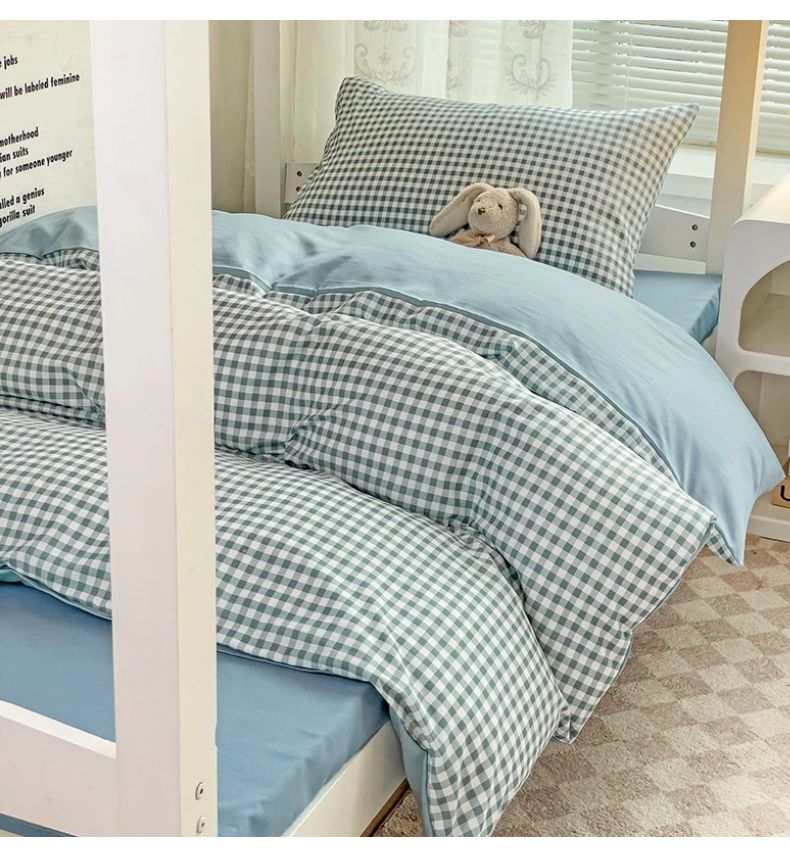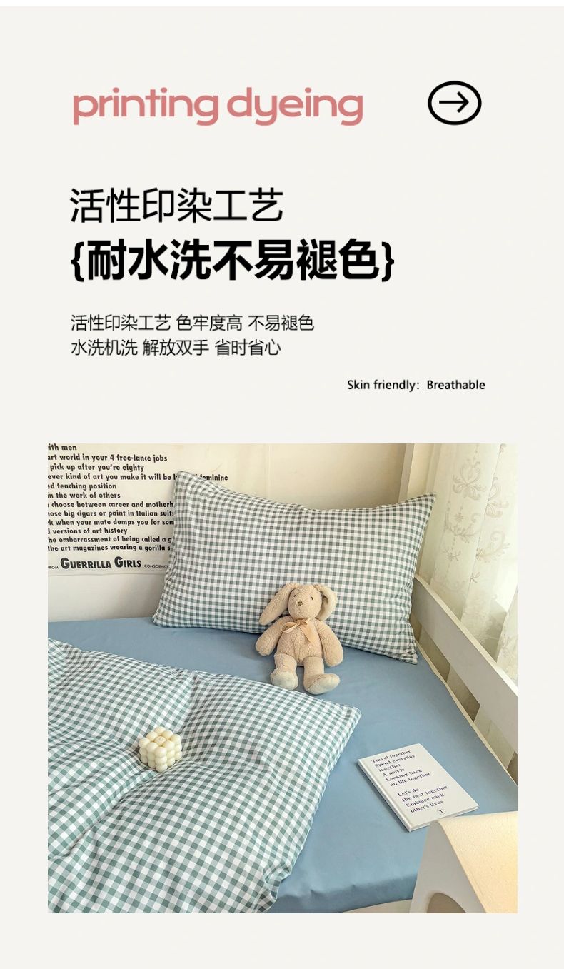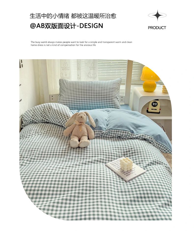 (总)曼璐 2025新款水洗棉无印风纯色条格学生三件套,草莓格,丁香玉,粉卡其,黑白条,黄小格,卡其灰,蓝小格,洛克兰灰,芒果格,米小格,蜜粉灰,浅灰,浅灰深灰,深灰,雾蓝洛克兰,雾蓝玉,玉深灰,芝士黄洛克兰,芝士卡其
