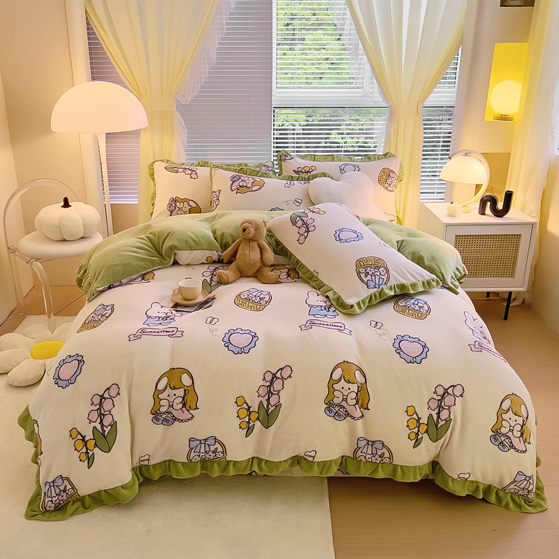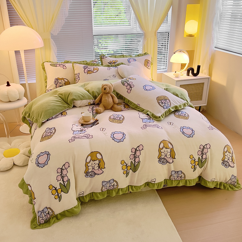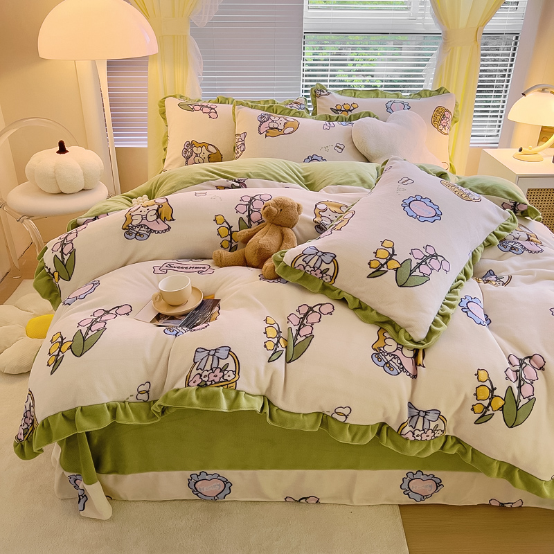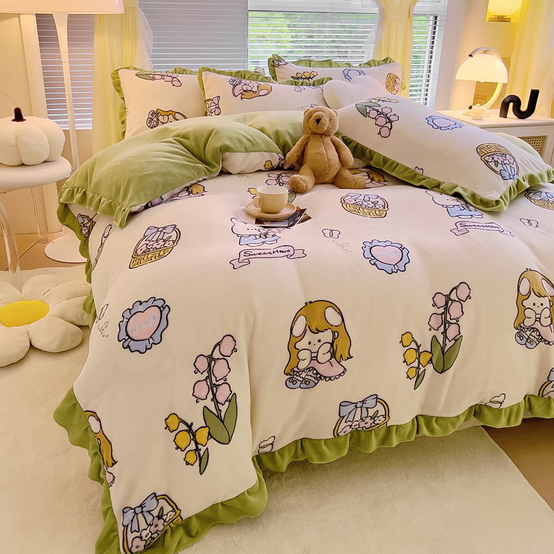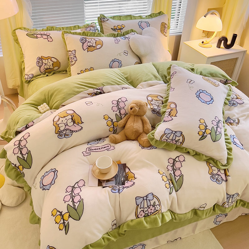 找底底 2024新款牛奶绒印花韩版四件套 萌动-铃兰女孩