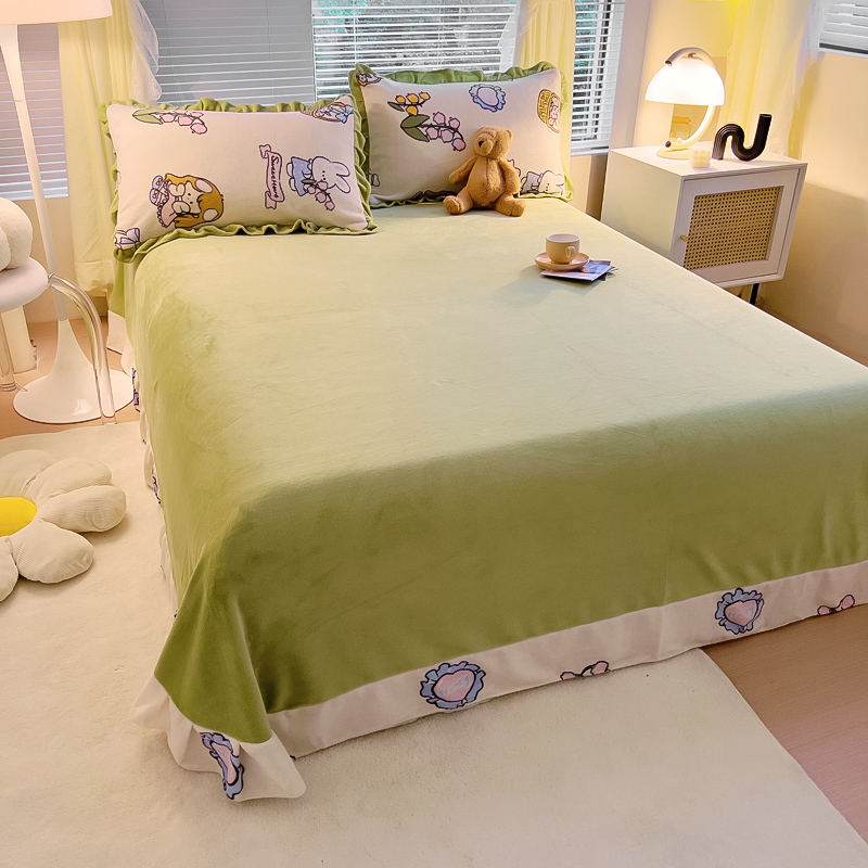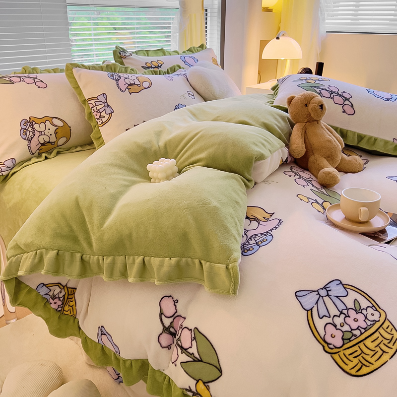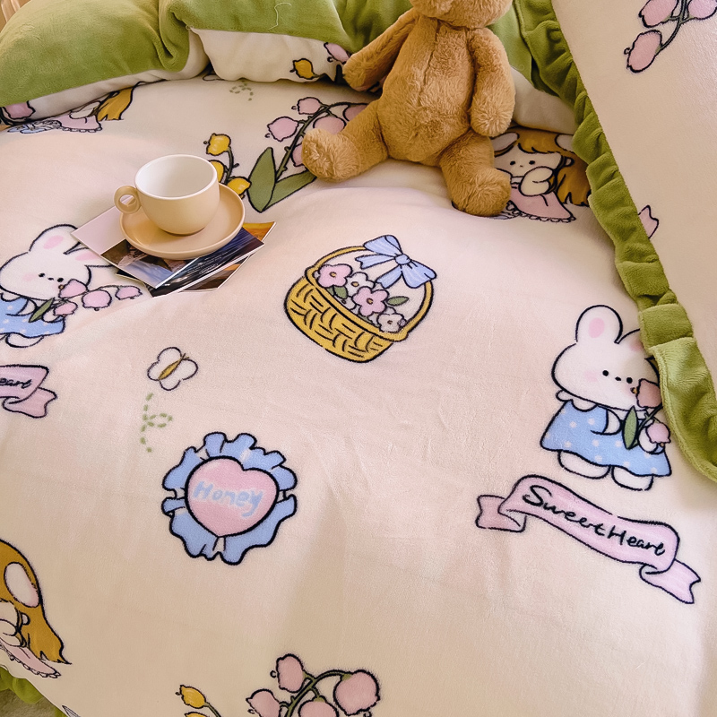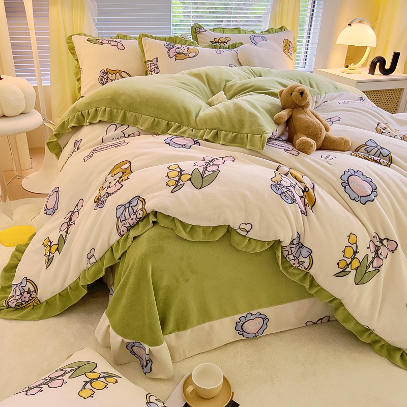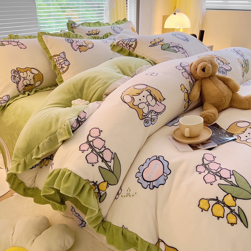 找底底 2024新款牛奶绒印花韩版四件套 萌动-铃兰女孩