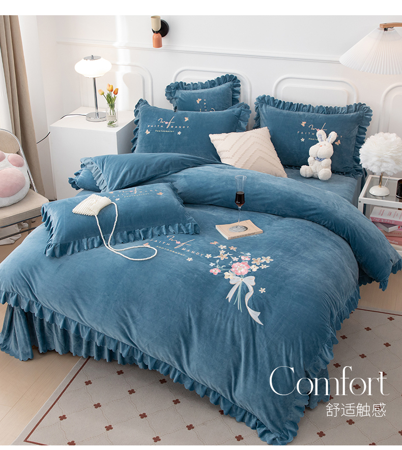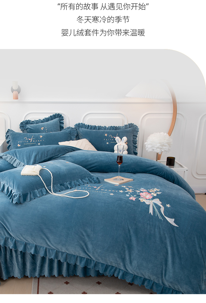 (总)优姿家纺 2024新品8.5斤德芙绒韩版床裙绣花保暖四件套