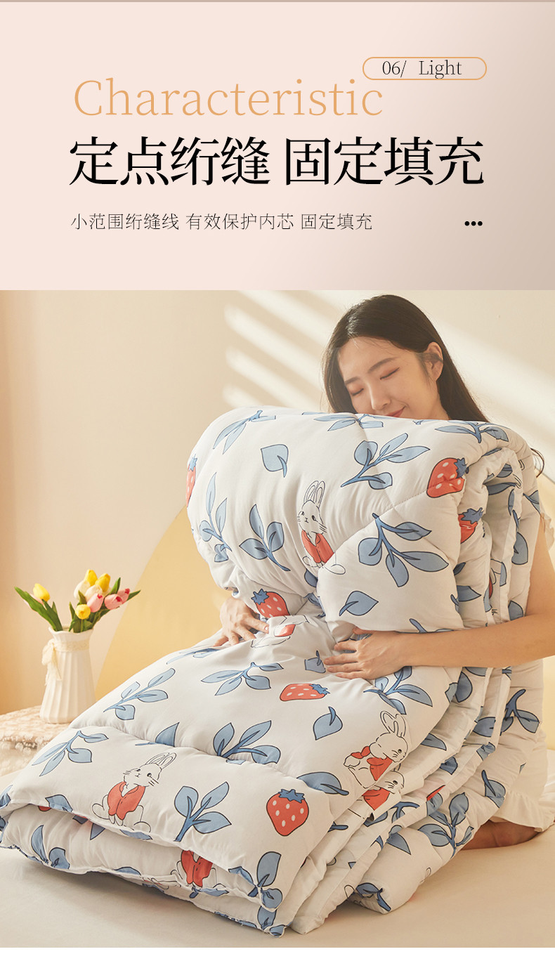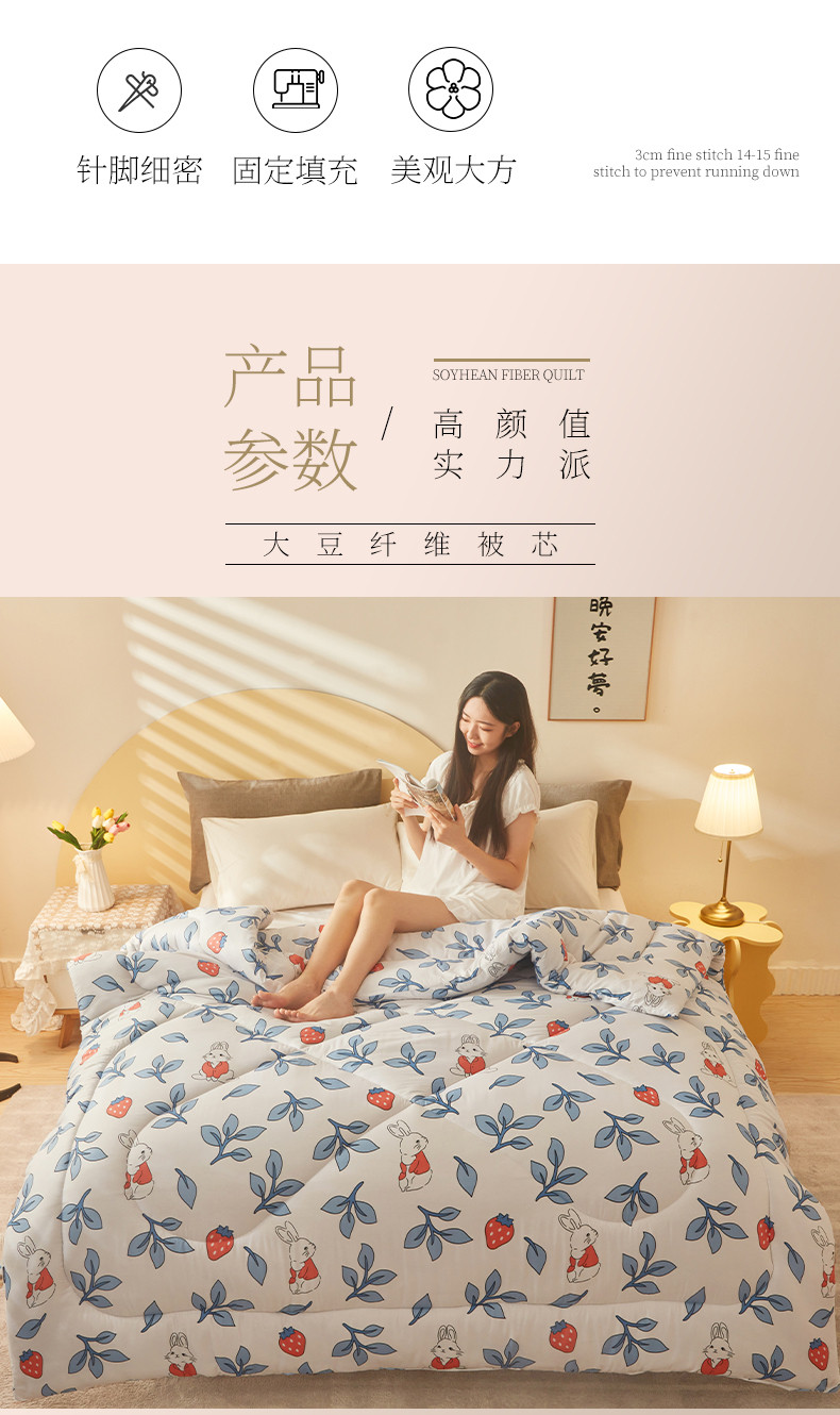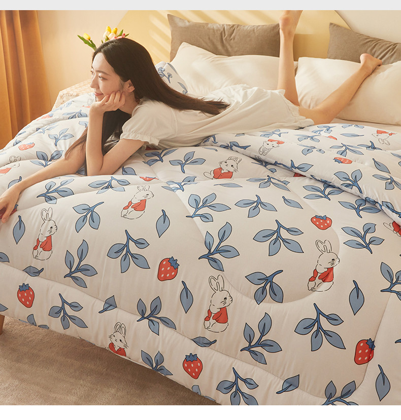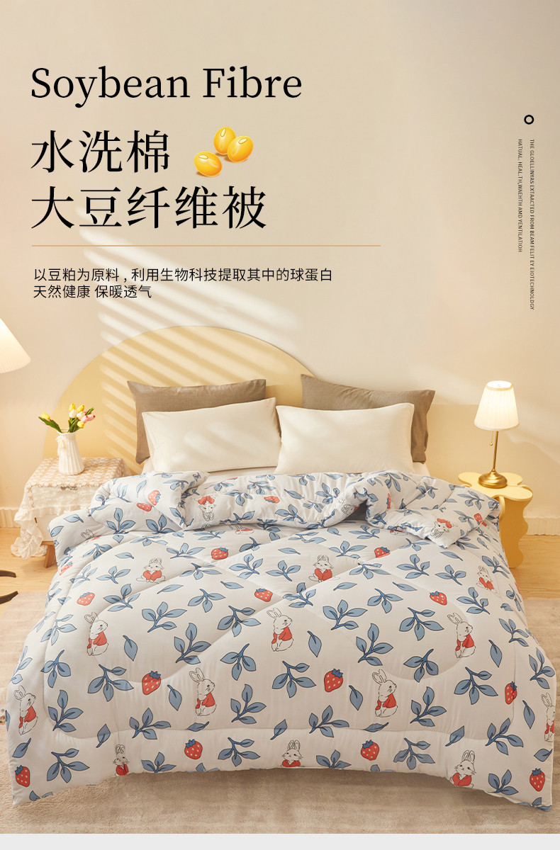 • 91家纺网 家纺一手货源 找家纺 艾兜坊 2023新款亲肤水洗棉大豆纤维被 被子被芯草莓小兔