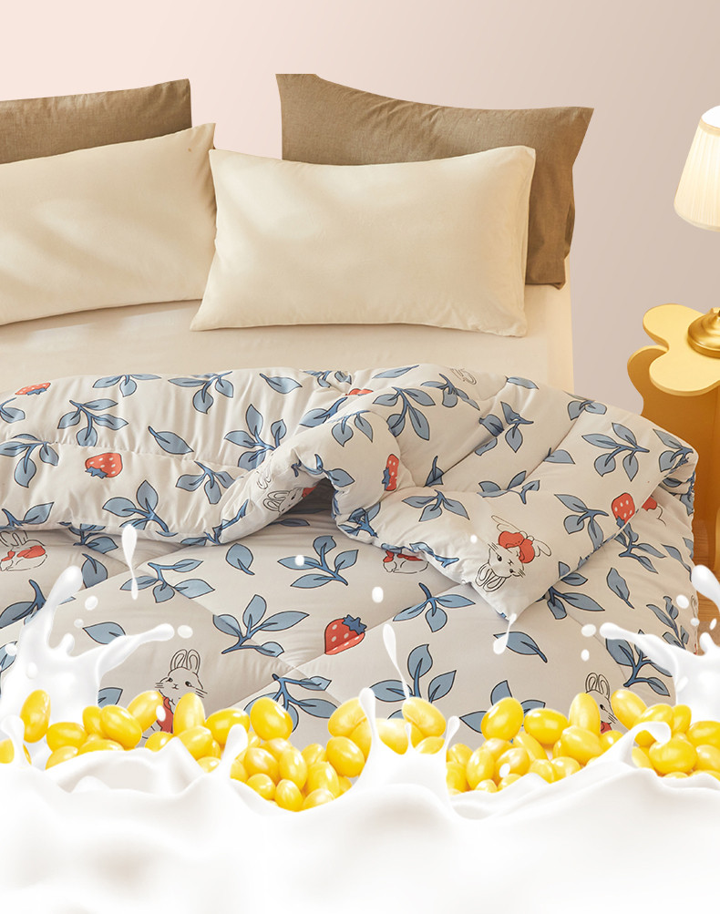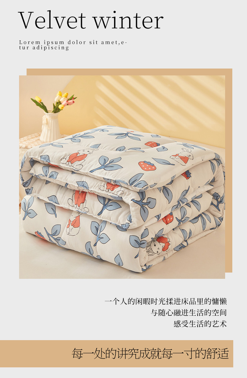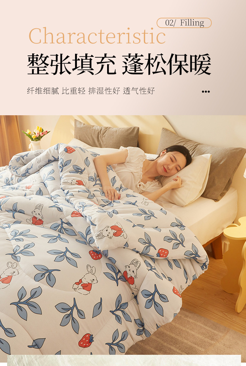• 91家纺网 家纺一手货源 找家纺 艾兜坊 2023新款亲肤水洗棉大豆纤维被 被子被芯草莓小兔
