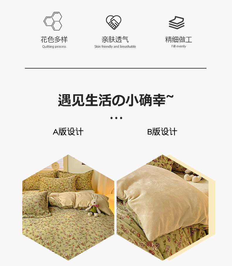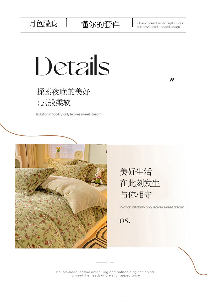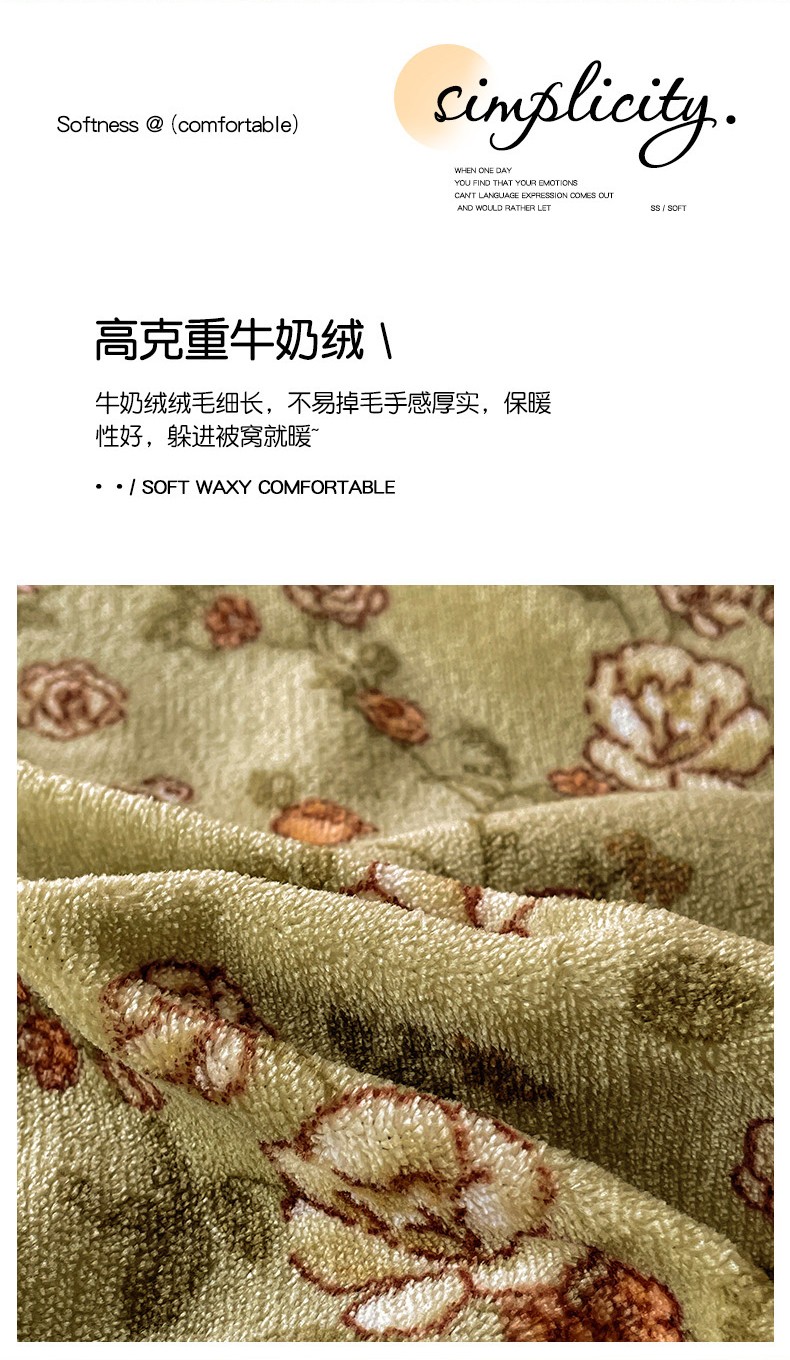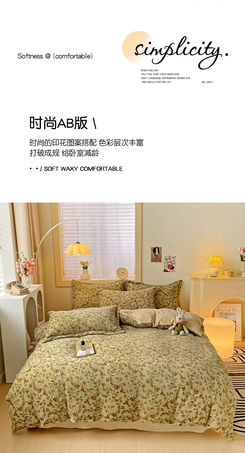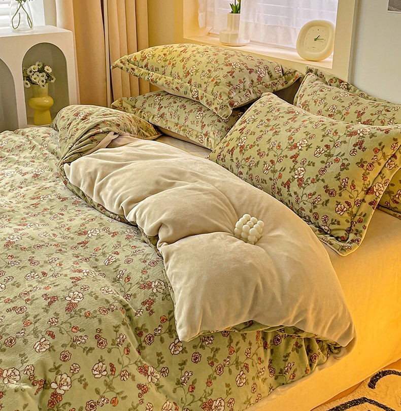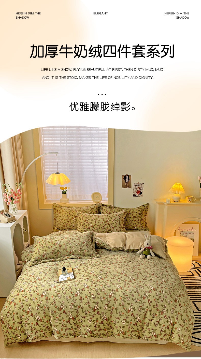当前位置: 91家纺网 > 商品网购 > 床品套件 > 四件套 > 牛奶绒四件套 > 畅畅家纺 2023新款活性印花小清新AB版加厚高克重法莱绒牛奶绒四件套 芳草集