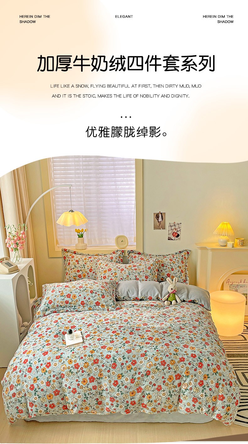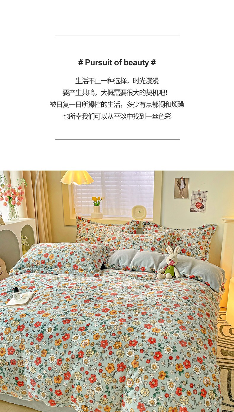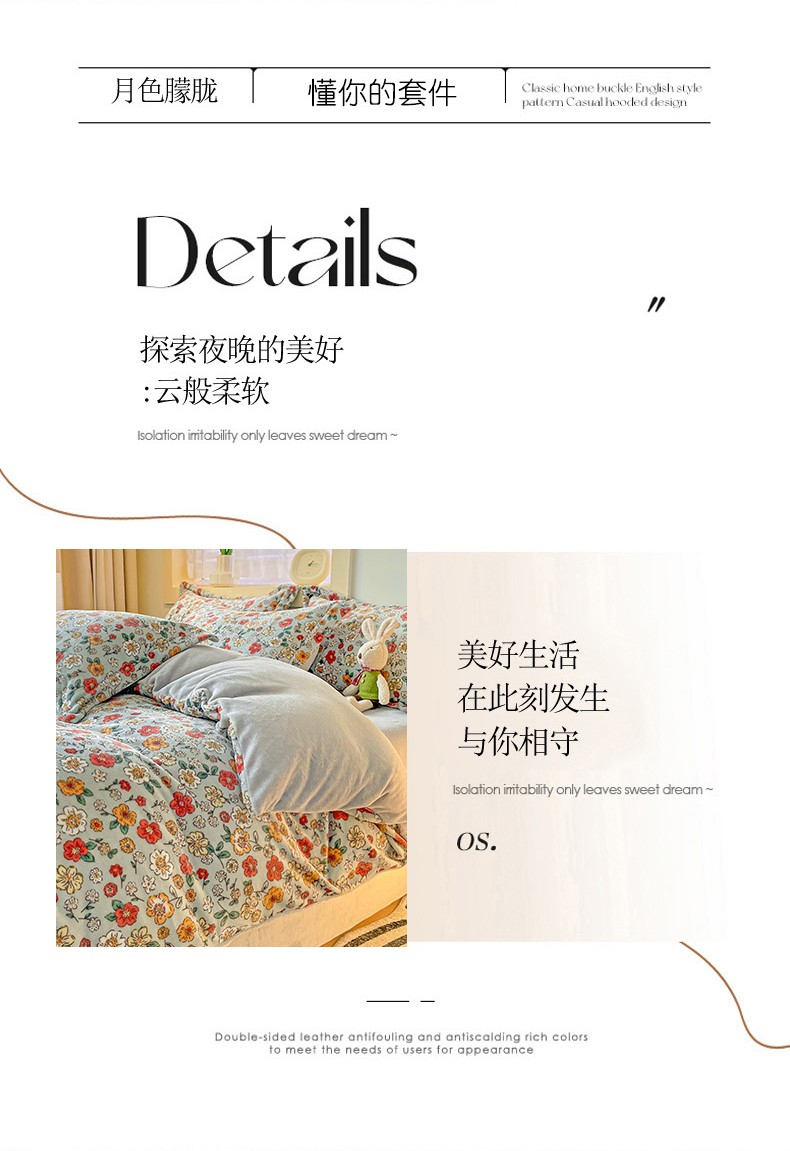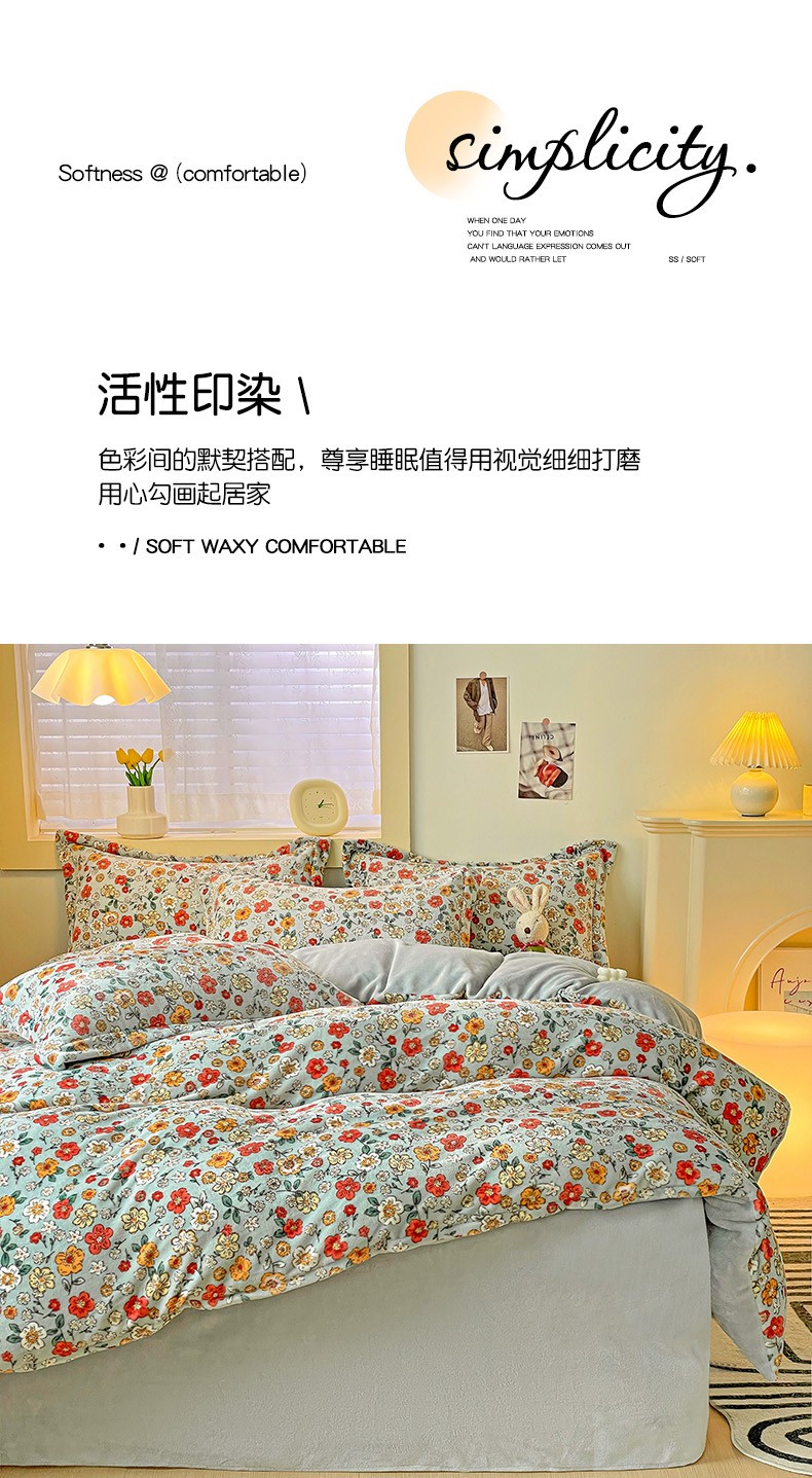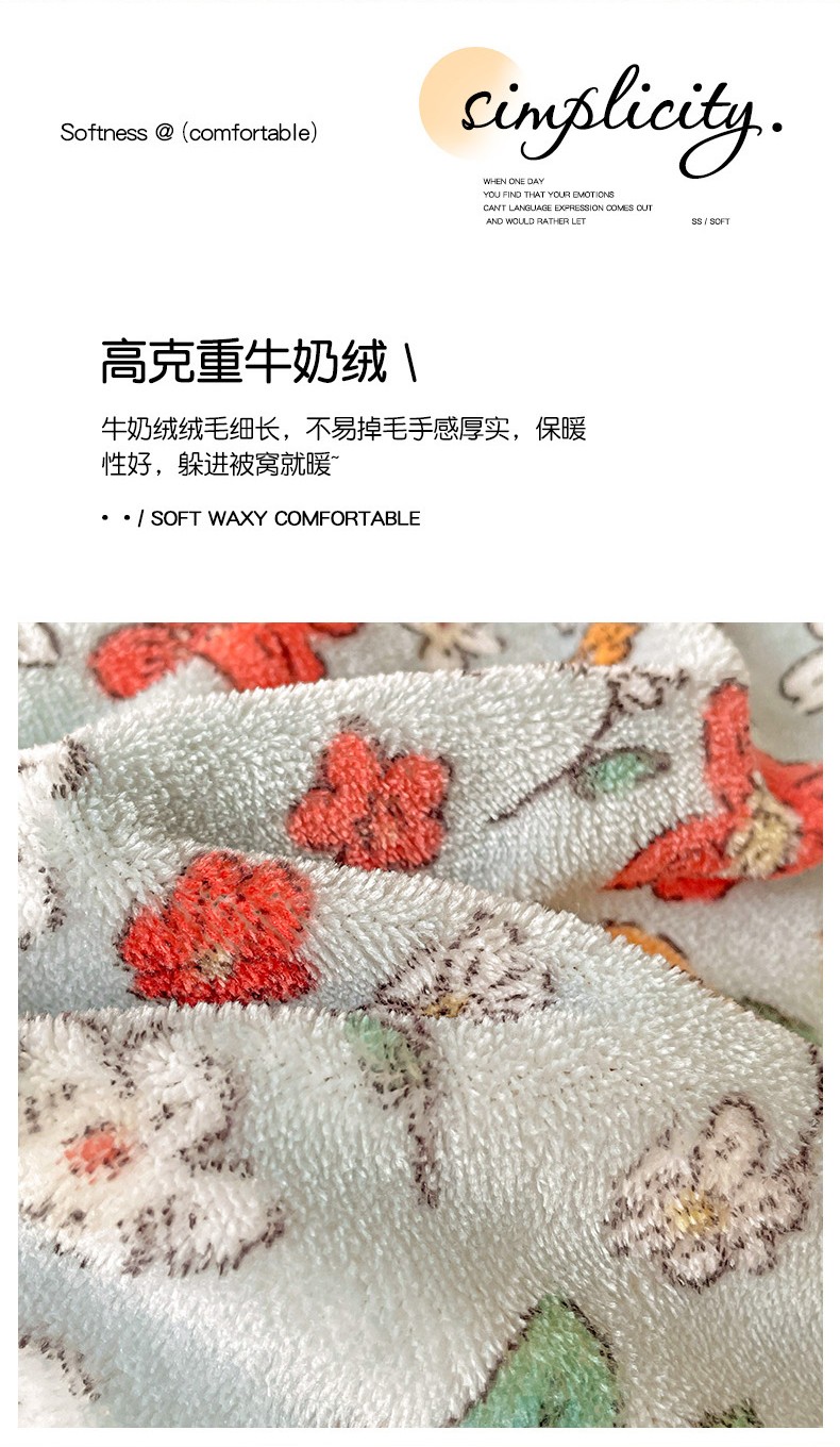 当前位置: 91家纺网 > 商品网购 > 床品套件 > 四件套 > 牛奶绒四件套 > 畅畅家纺 2023新款活性印花小清新AB版加厚高克重法莱绒牛奶绒四件套 夕颜