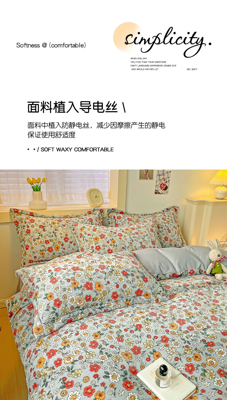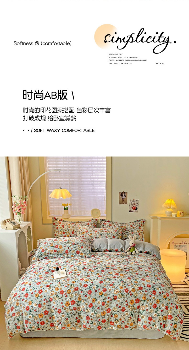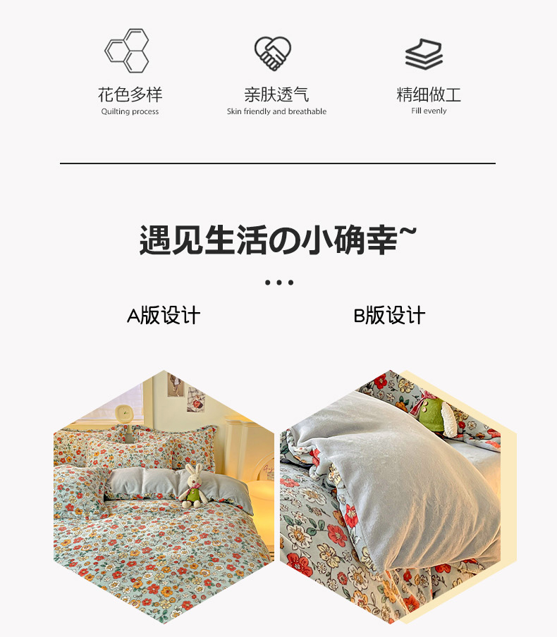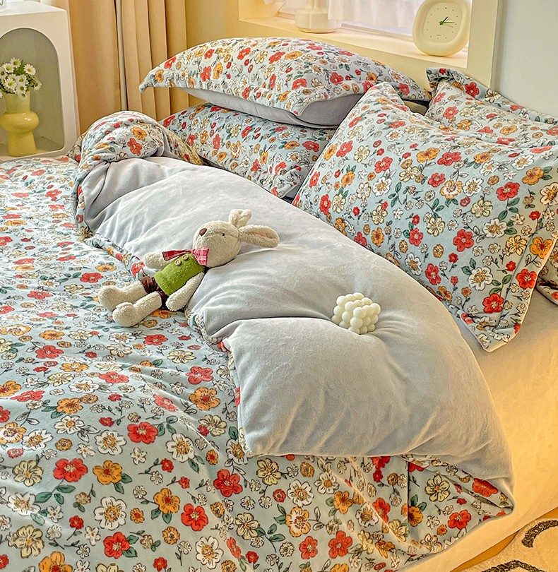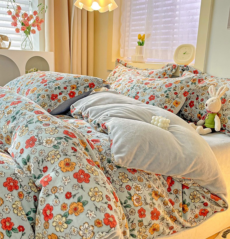 当前位置: 91家纺网 > 商品网购 > 床品套件 > 四件套 > 牛奶绒四件套 > 畅畅家纺 2023新款活性印花小清新AB版加厚高克重法莱绒牛奶绒四件套 夕颜
