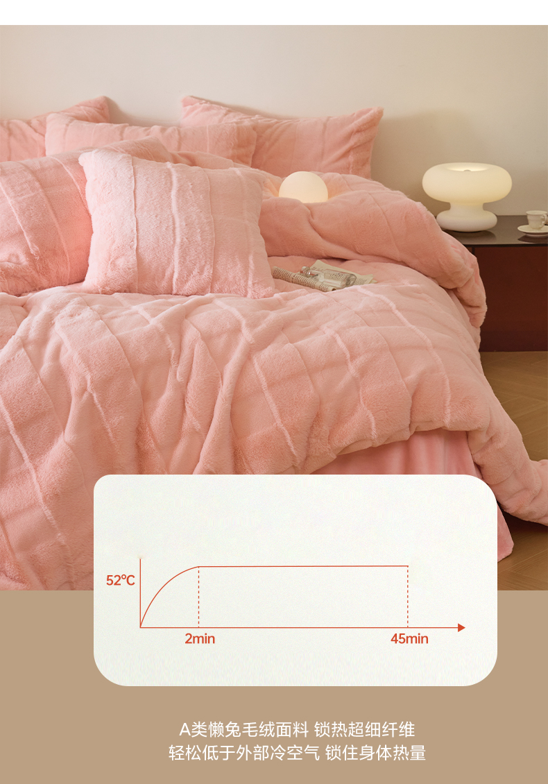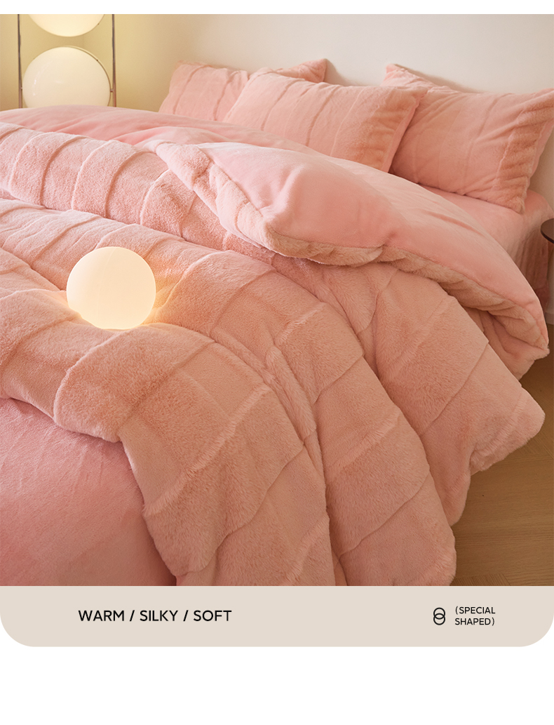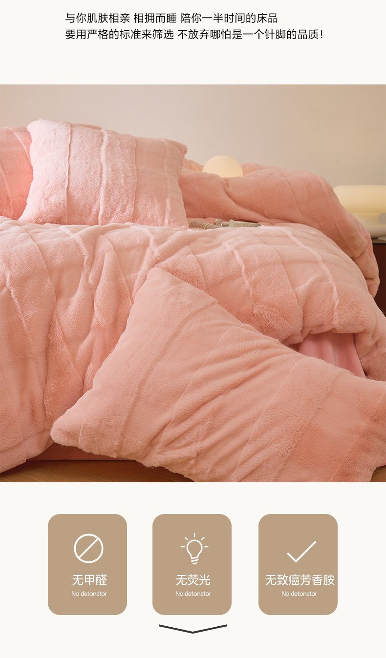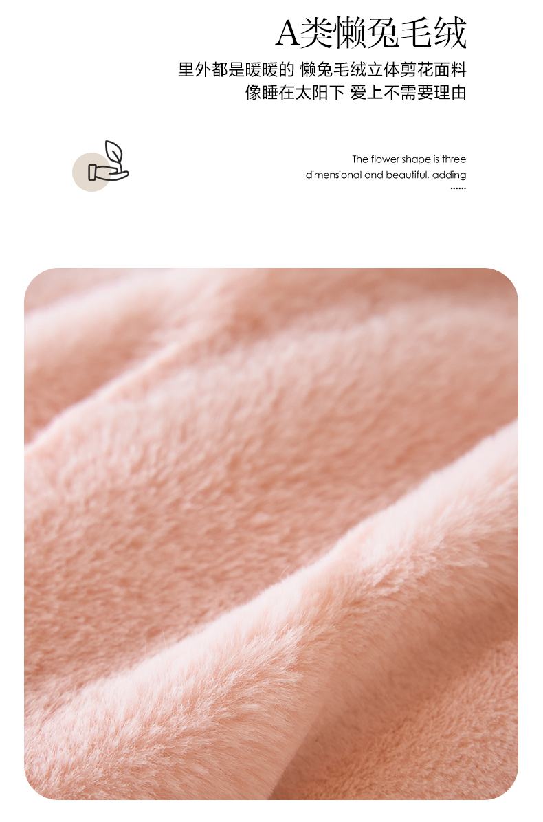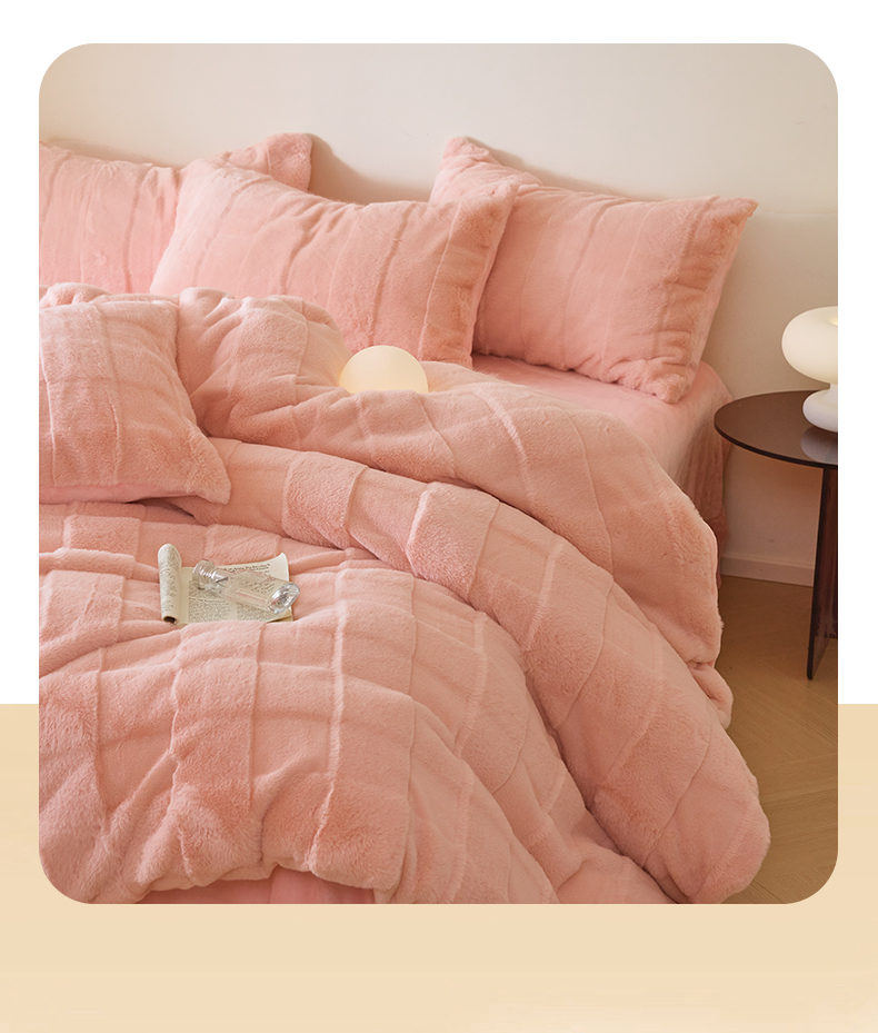 商品名称:民新 2024热款9斤獭兔毛绒兔兔绒剪花牛奶绒四件套-奢柔系列 蜜桃粉
