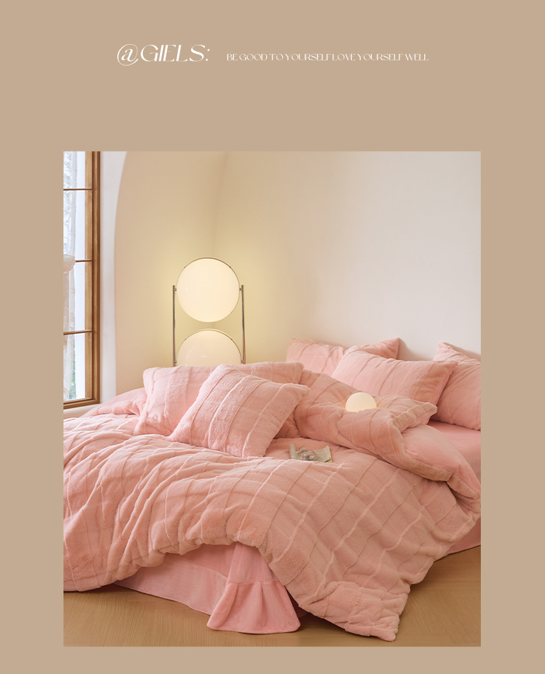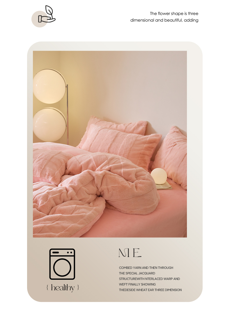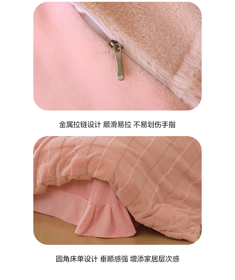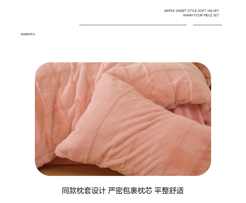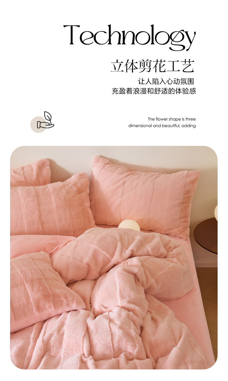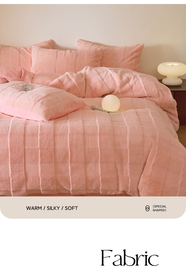 商品名称:民新 2024热款9斤獭兔毛绒兔兔绒剪花牛奶绒四件套-奢柔系列 蜜桃粉